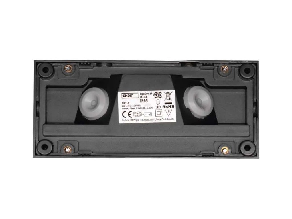 Tělo svítidla je vyrobeno z odolného materiálu ABS, který v kombinaci s krytím IP65 zaručuje spolehlivý provoz i v náročnějších venkovních podmínkách. Odolává prachu i stříkající vodě, a je tak vhodné pro instalaci do exteriéru i interiéru. Konstrukce svítidla směruje světlo dolů pod úhlem, což minimalizuje oslnění a zároveň efektivně osvětluje nášlapnou plochu.