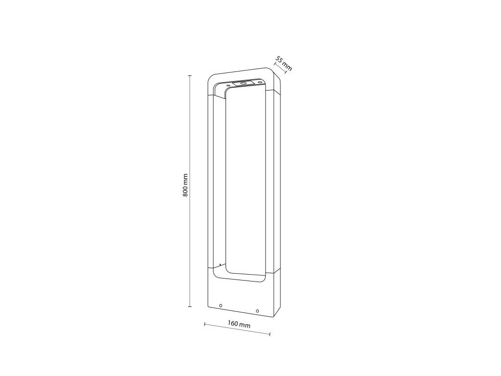 Minimalistický design umožňuje snadné kombinování s dalšími prvky venkovního osvětlení a hodí se jak k moderní architektuře, tak i k jednodušším exteriérům. Výška svítidla je 800 mm, šířka 160 mm a hloubka 55 mm. Životnost LED zdroje dosahuje až 30 000 hodin a výrobce poskytuje záruku 2 roky.