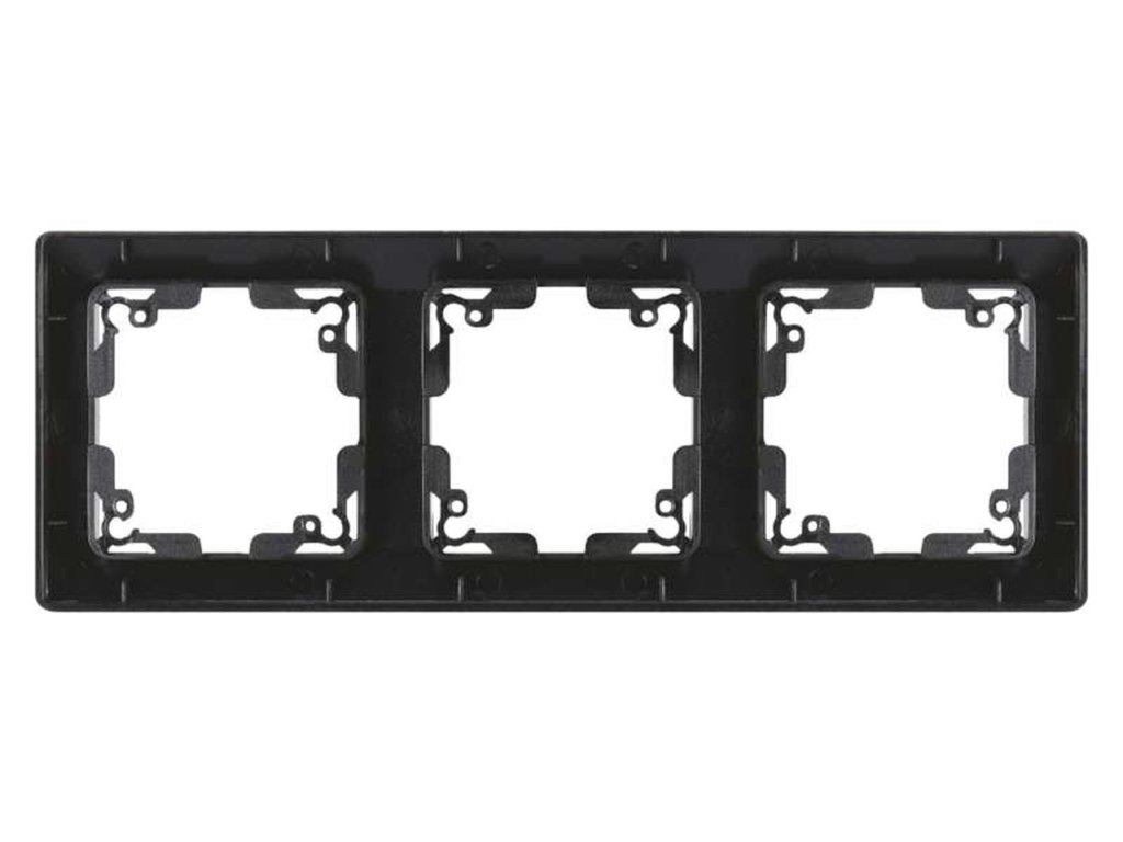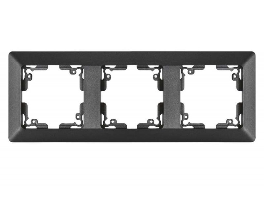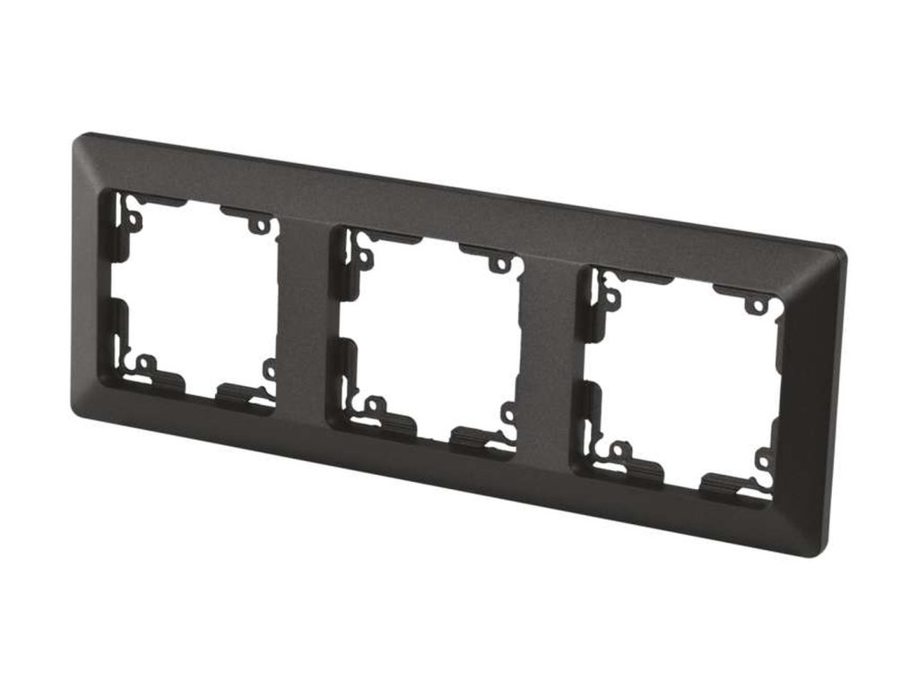 Trojnásobný rámeček antracitové barvy pro vodorovnou i svislou montáž a je určen pro umístění 3 vypínačů nebo zásuvek.