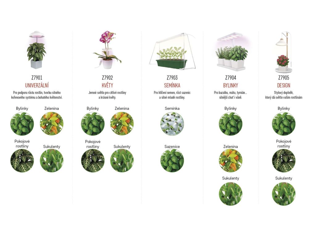 Svítidlo využívá plnospektrální LED technologii v rozsahu 400–700 nm, která věrně napodobuje přirozené sluneční světlo. Díky vysokému indexu podání barev CRI > 95 Ra zajišťuje realistické barevné podání rostlin, podporuje jejich přirozený vzhled a umožňuje vnímat skutečné odstíny listů i květů. Plnospektrální bílé LED zároveň podporují fotosyntézu ve všech fázích růstu a přispívají k tvorbě chlorofylu.