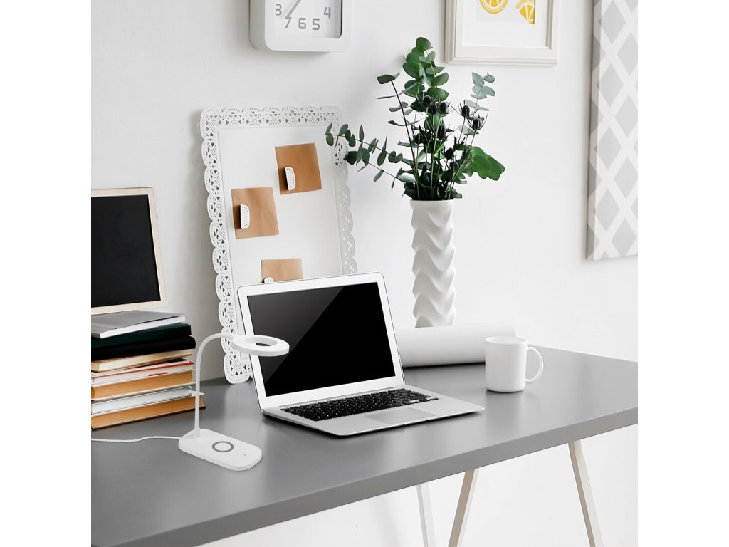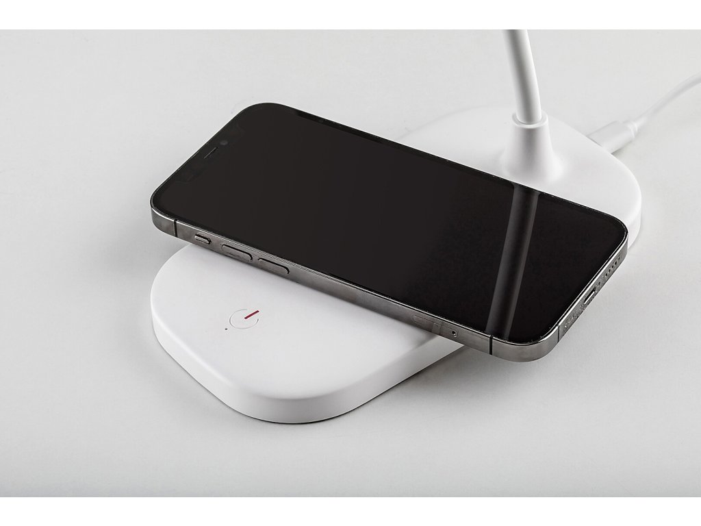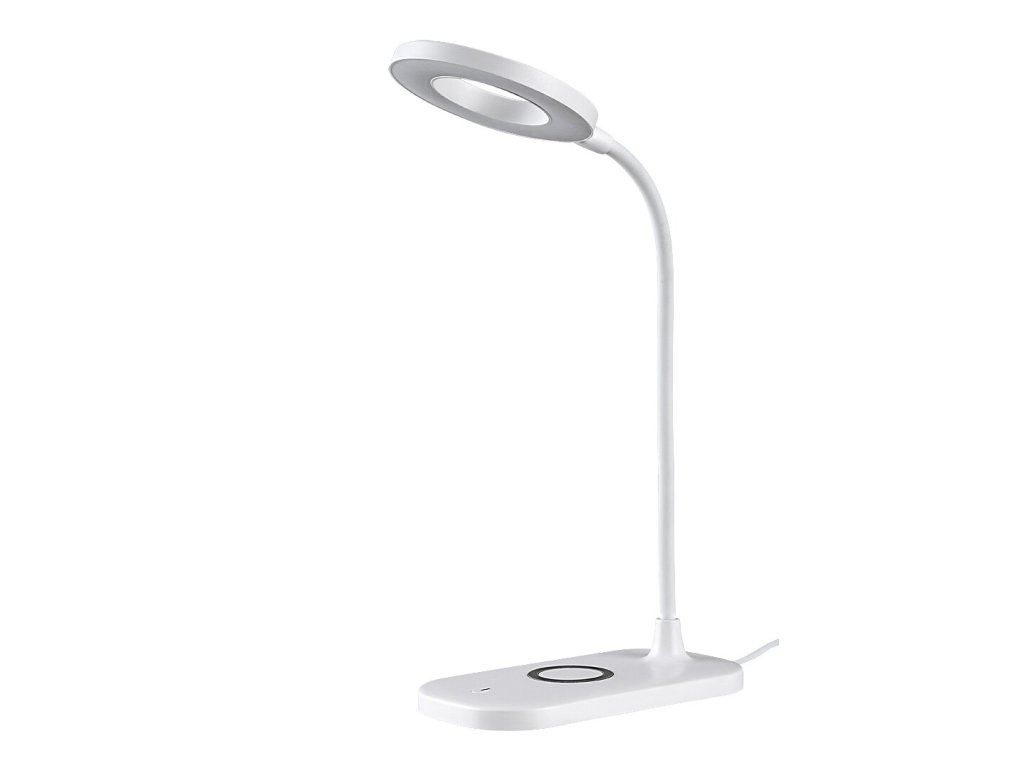 Bílá LED stolní lampička Hardin 5W s bezdrátovým nabíjením