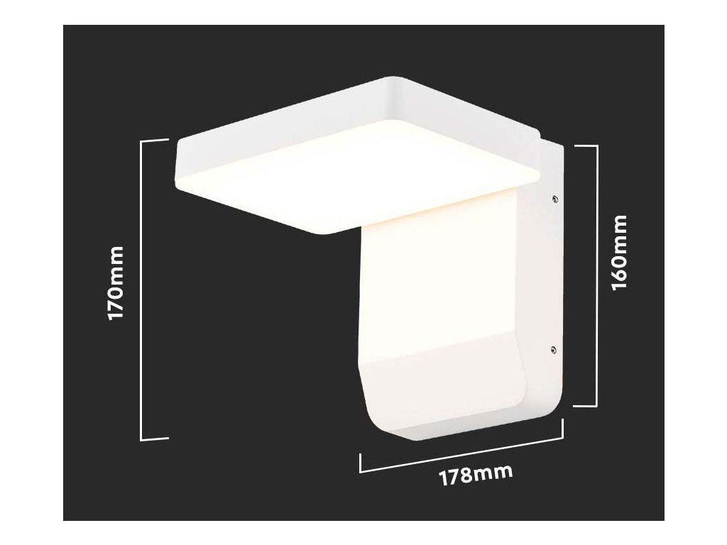 Venkovní nástěnné LED svítidlo má jednoduchý čtvercový design, který vkusně osvítí zdi Vašeho domu, terasy, balkonu či garáže. Tělo svítidla je vyrobeno z odolného hliníku s bílou povrchovou úpravou. Stínidlo difuzoru, vyrobené z lesklého polykarbonátu v opálové barvě. Pod stínidlem se nachází integrovaný LED zdroj o výkonu 17W, který nabízí životnost až 20 000 hodin. Krytí IP65 zajišťuje ochranu před prachem a ochranu proti stříkající vodě z každého směru.