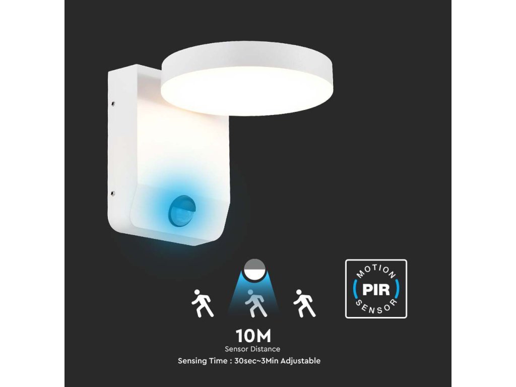 Bílé fasádní LED svítidlo kulaté s pohybovým čidlem 17W IP65