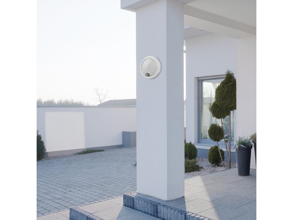 Venkovní fasádní svítidlo Hitura s pohybovým senzorem v moderním stylu je ideálním řešením pro osvětlení terasy, vchodových dveří nebo chodníků vedle domu. Jeho elegantní kruhový design vyrobený z kvalitního bílého plastu diskrétně ladí s fasádou domu, zatímco funkčnost svítidla přispívá ke zvýšení bezpečnosti a komfortu.