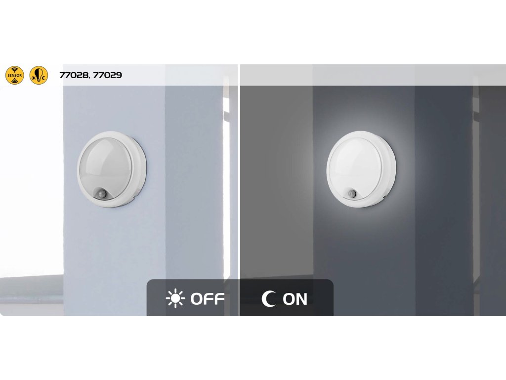Inteligentní pohybový senzor reaguje na pohyb ve vzdálenosti 6 ± 2 metrů a v úhlu záběru 120°, přičemž přizpůsobuje jas světla podle aktuálních podmínek. Díky krytí IP54 je svítidlo chráněno proti prachu a stříkající vodě, což ho činí ideálním pro venkovní použití.
