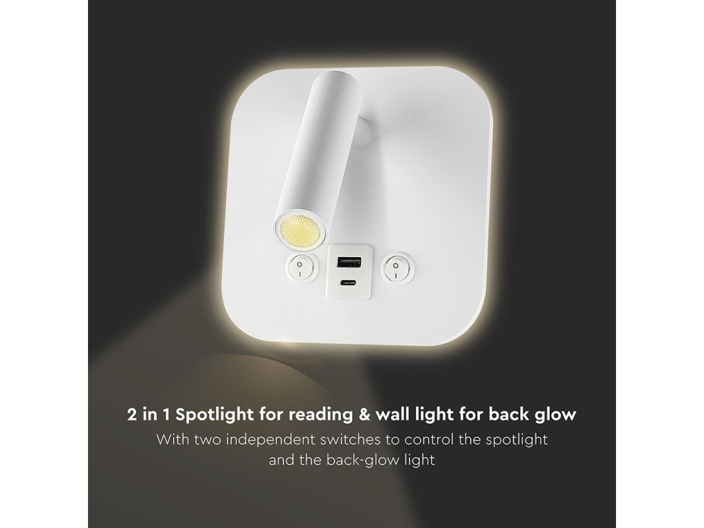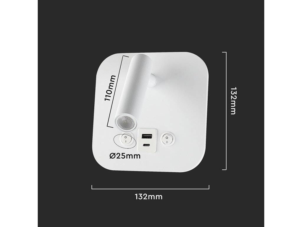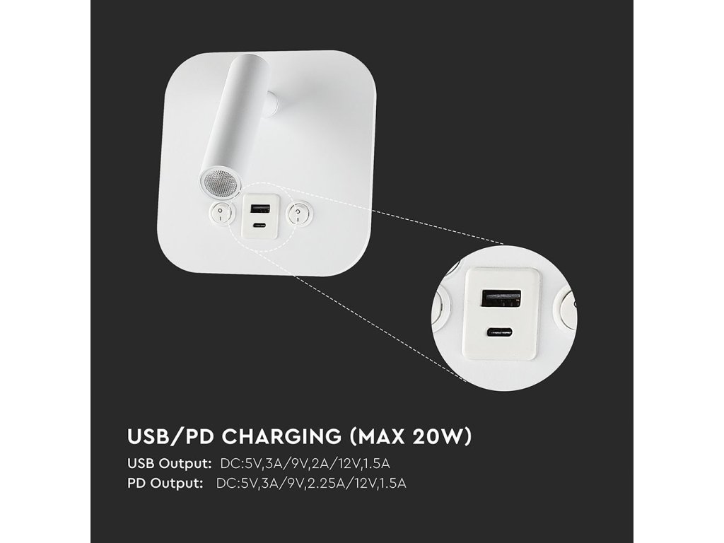 Bílé nástěnné LED svítidlo s USB/PD nabíjením 8W