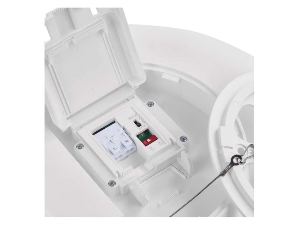 Tělo svítidla je vyrobeno z odolného plastu a díky vysokému krytí IP55 je chráněno proti prachu i stříkající vodě, což zajišťuje spolehlivý provoz i ve vlhkém prostředí.