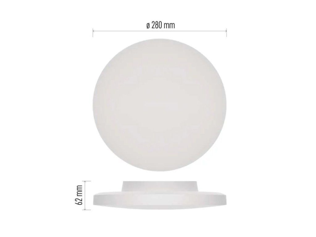 Rozměry svítidla jsou 280 mm v průměru a 62 mm na výšku.