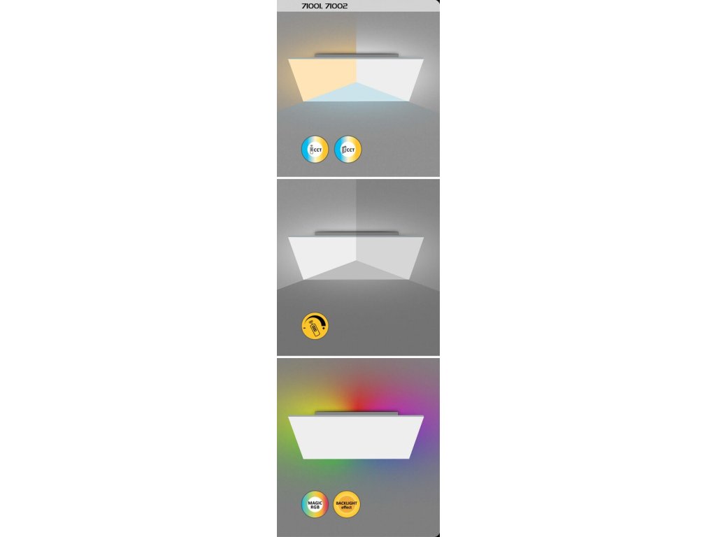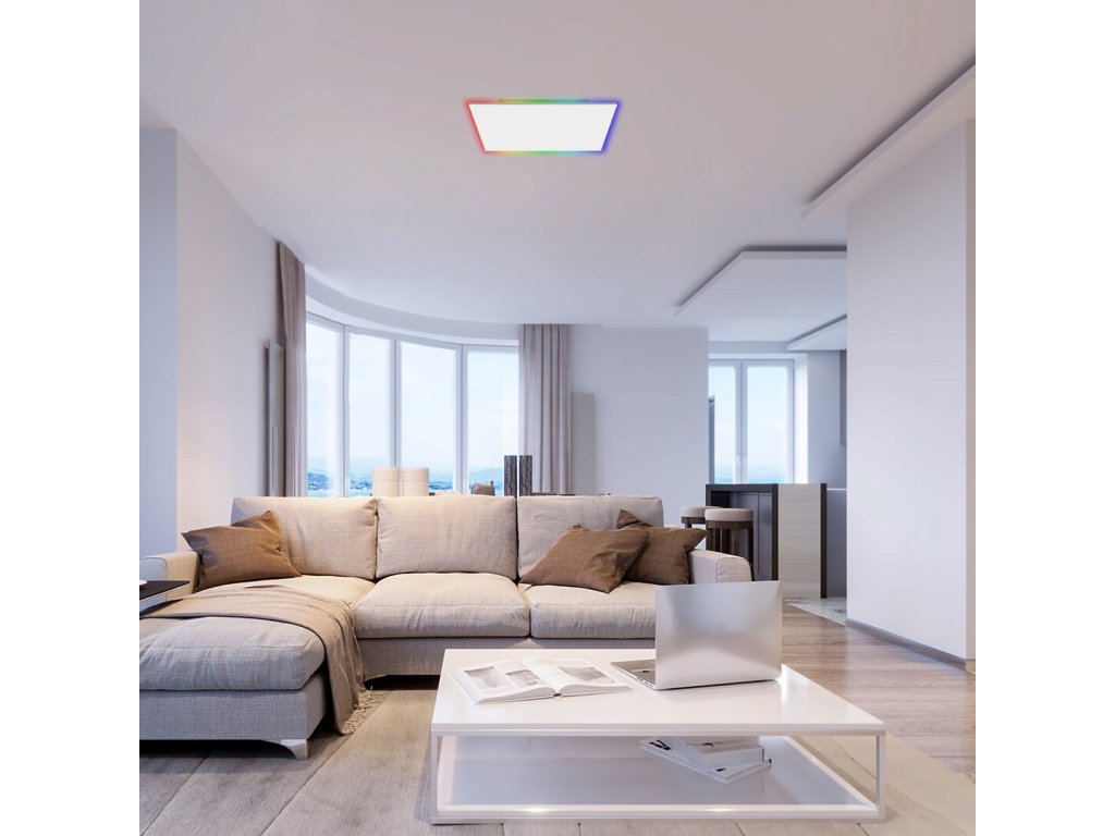 Svítidlo Faramir navíc přináší atraktivní doplňkové funkce – RGB podsvícení pro vytvoření barevné atmosféry, stmívatelnost, paměťovou funkci, noční režim i praktický časovač. Vše lze pohodlně ovládat dálkovým ovladačem nebo klasickým nástěnným vypínačem. Funkce RGB a efekt zadního podsvícení dodají svítidlu neotřelý vzhled i po zhasnutí hlavního světla.