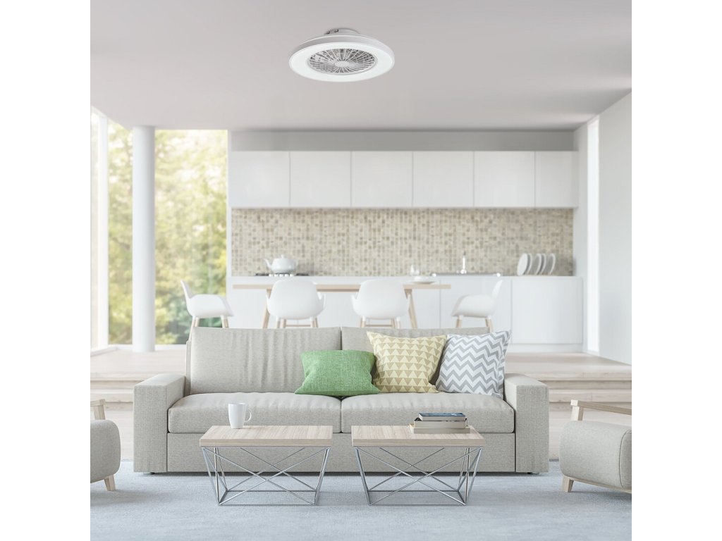 Stropní ventilátorové svítidlo Dalfon2 nabízí praktické řešení 2 v 1, které spojuje moderní LED osvětlení s účinným stropním ventilátorem. Díky svému modernímu kruhovému designu v bílém provedení se snadno začlení do současných interiérů a zároveň nabídne vysoký uživatelský komfort. Tělo svítidla je vyrobeno z kombinace kovu a plastu, zatímco bílé plastové stínidlo je doplněno jemným hvězdným efektem, který vytváří dekorativní vzhled při rozsvícení.