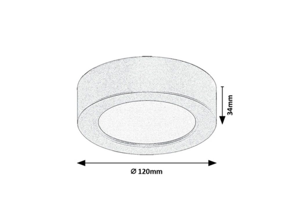 Rozměry svítidla jsou 120 mm v průměru a 34 mm na výšku.