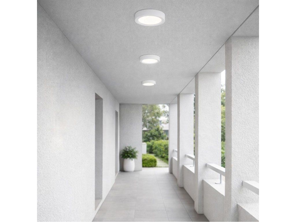 Stropní venkovní svítidlo Shaun Plus zaujme čistým, minimalistickým designem v bílém provedení, díky kterému nenápadně zapadne do fasády i krytých venkovních prostor, jako jsou terasy, balkony nebo vstupy do domu. Nízký profil působí elegantně a zároveň prakticky, protože svítidlo nepřekáží a opticky nenarušuje prostor.