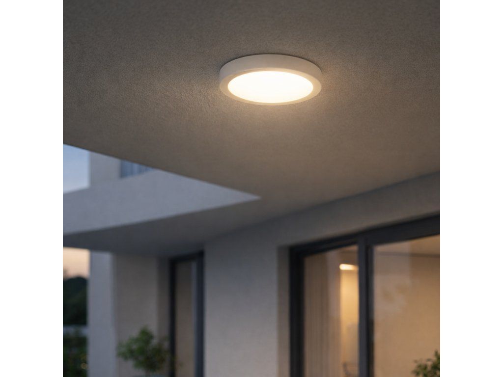 Stropní venkovní svítidlo Shaun Plus zaujme čistým, minimalistickým designem v bílém provedení, díky kterému nenápadně zapadne do fasády i krytých venkovních prostor, jako jsou terasy, balkony nebo vstupy do domu. Nízký profil působí elegantně a zároveň prakticky, protože svítidlo nepřekáží a opticky nenarušuje prostor.