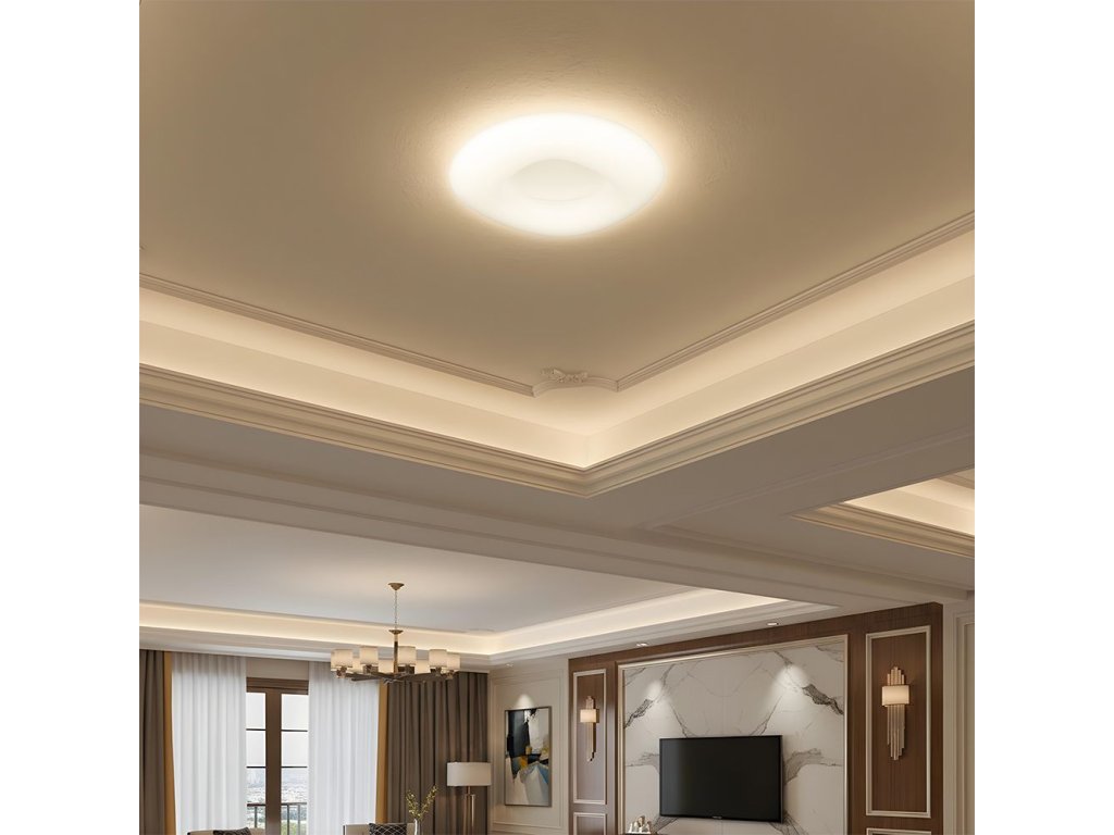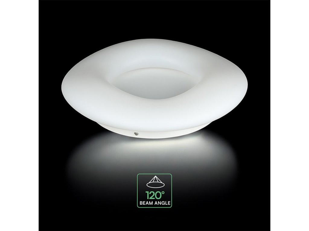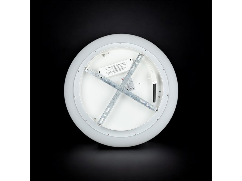Světelný tok 4050 lm a vyzařovací úhel 120° zajišťují dostatek světla i pro větší místnosti, a to při úsporném výkonu 45 W. Konstrukce o průměru 460 mm působí na stropě i na zdi velmi elegantně a díky výšce pouhých 100 mm nepůsobí robustně.
