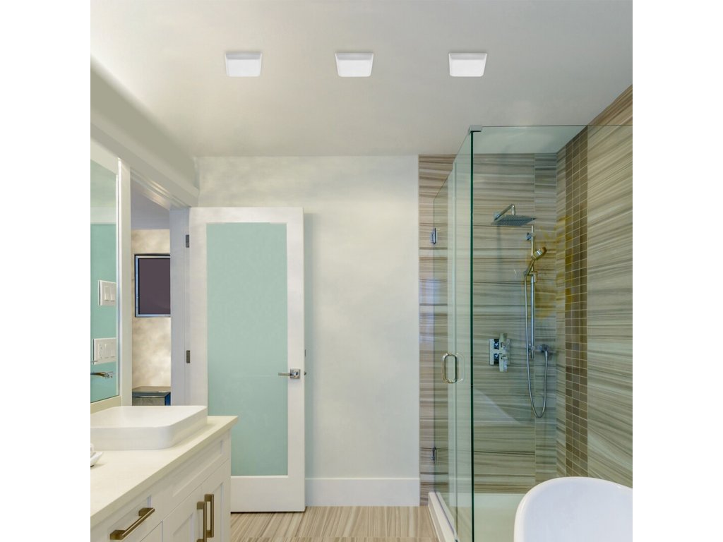 Díky stupni krytí IP65 je svítidlo Oleg ideální právě do koupelny – je totiž odolné proti vniknutí prachu a stříkající vodě ze všech stran. To zaručuje nejen dlouhou životnost světelného zdroje, ale také bezpečný a bezstarostný provoz. Hranatý design svítidla s rozměry 123 x 123 mm a výškou pouhých 25 mm zajistí jeho nenápadné zapuštění do stropu, přičemž pro montáž je potřeba otvor o rozměrech 107 x 107 mm.