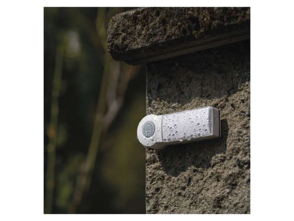 Součástí balení je voděodolné bezdrátové tlačítko, které lze umístit libovolně – na branku, plot nebo ke vstupním dveřím. Díky odolnému provedení si bez problémů poradí i s deštěm či sněhem a umožňuje tak spolehlivý provoz v exteriéru po celý rok.