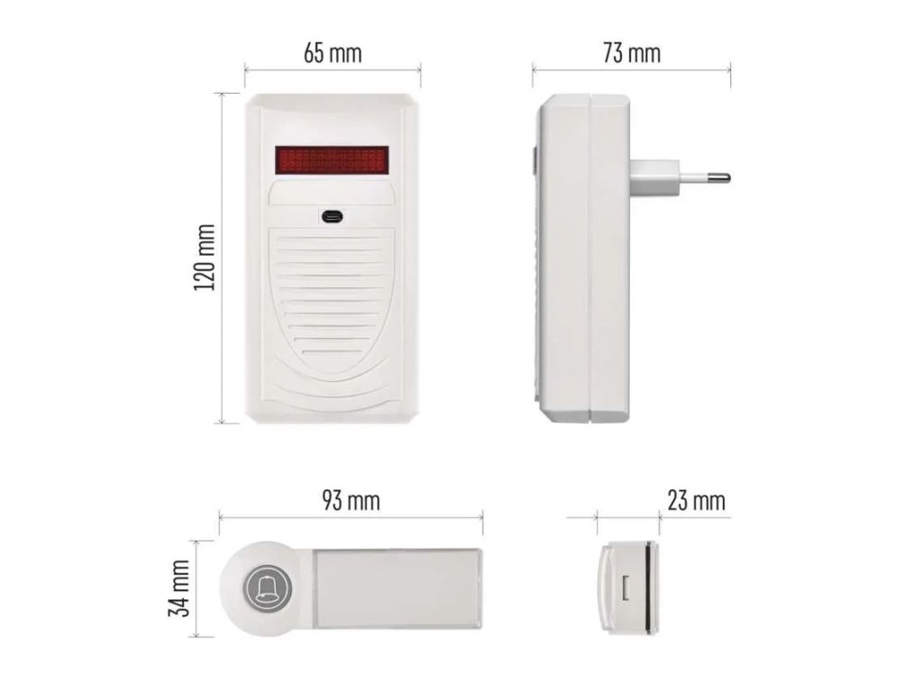 | Rozměry | 23 x 93 x 34 mm (tlačítko), 73 x 65 x 120 mm (zvonek) |