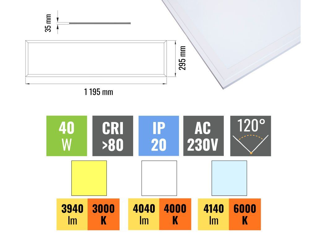 Bílý podhledový LED panel 300 x 1200mm 40W Economy