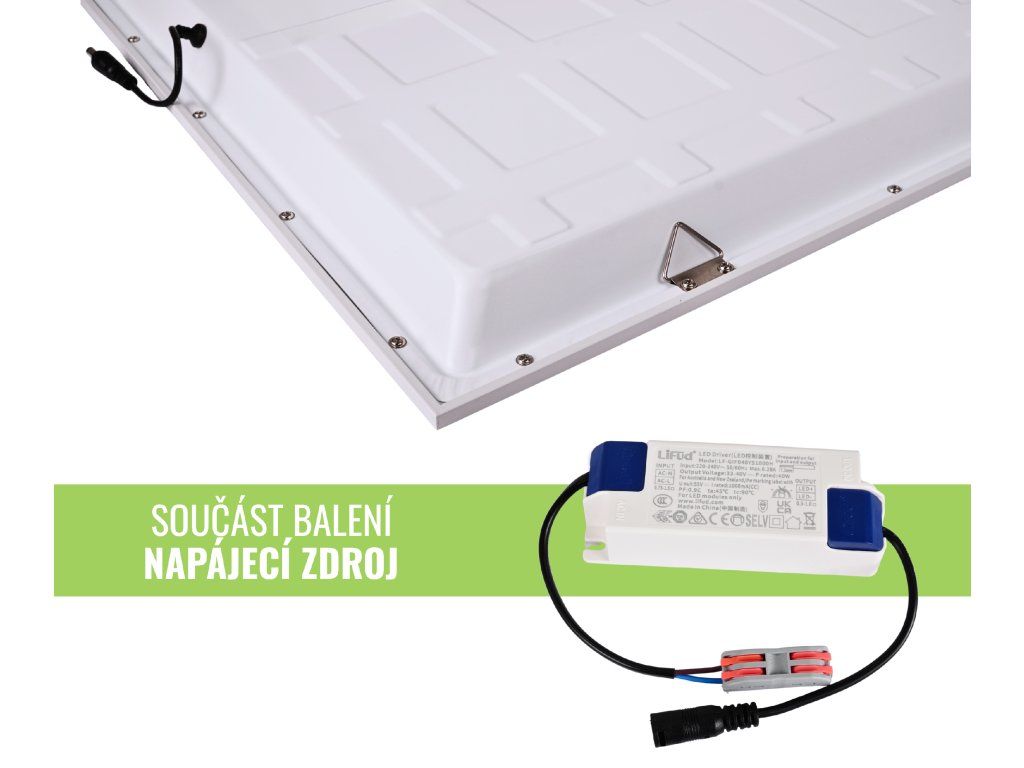 Tento LED panel je dodáván včetně kvalitního napájecího zdroje Lifud s napětím na výstupu v rozmezí 28-42V, díky tomu na něj poskytujeme 5-ti letou záruku.