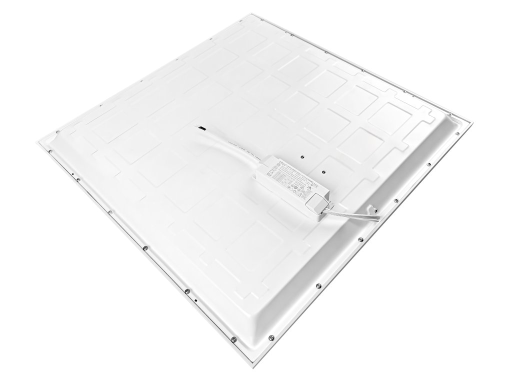 Robustní konstrukce s hliníkovým rámem a kvalitním zdrojem značky LiFUD zajišťuje stabilní provoz, okamžitý start bez hučení a dlouhou životnost až 50 000 hodin. Panel splňuje krytí IP41, takže je chráněn proti prachu a kapkám vody. Standardní rozměr 595 × 595 mm umožňuje snadnou instalaci do běžných podhledových stropních systémů.