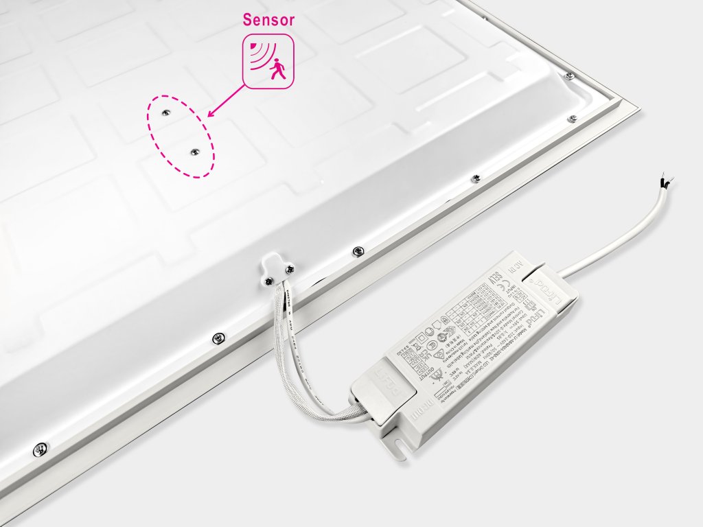 Panel je vybaven mikrovlnným pohybovým senzorem a senzorem denního světla, které zajišťují automatické rozsvícení při pohybu nebo při poklesu intenzity okolního světla.