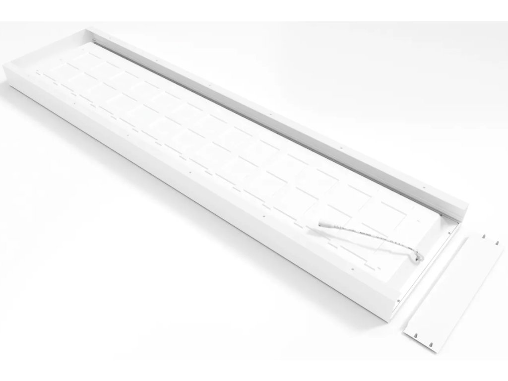 Souprava je dodávána včetně hliníkového montážního rámečku, který umožňuje instalaci panelu i do prostor bez kazetového stropu, například přímo na pevný strop nebo do sádrokartonových konstrukcí. Rámeček se skládá ze čtyř samostatných částí, které se snadno kompletují pomocí šroubů a vytvářejí pevný a stabilní celek s čistým, minimalistickým vzhledem.