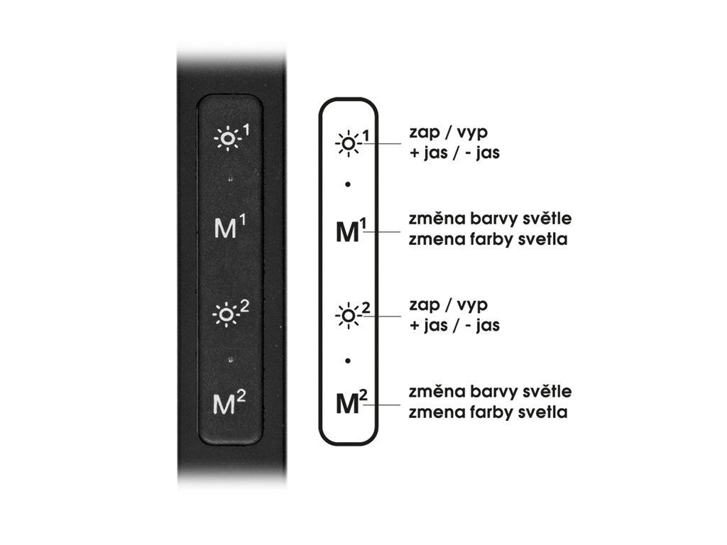 Ovládání je řešeno praktickým panelem na těle lampy, kde lze jednoduše zapínat a vypínat jednotlivé světelné segmenty, upravovat intenzitu osvětlení i měnit barvu světla podle aktuální potřeby. Minimalistické černé provedení navíc snadno zapadne do moderních interiérů a působí elegantně a nenápadně.