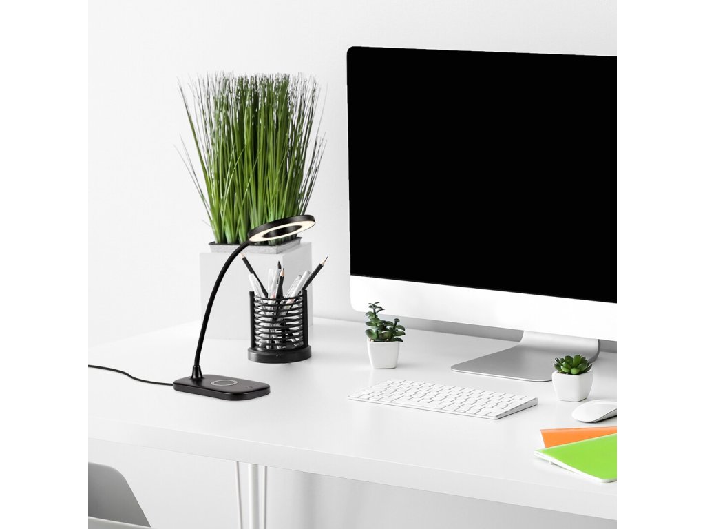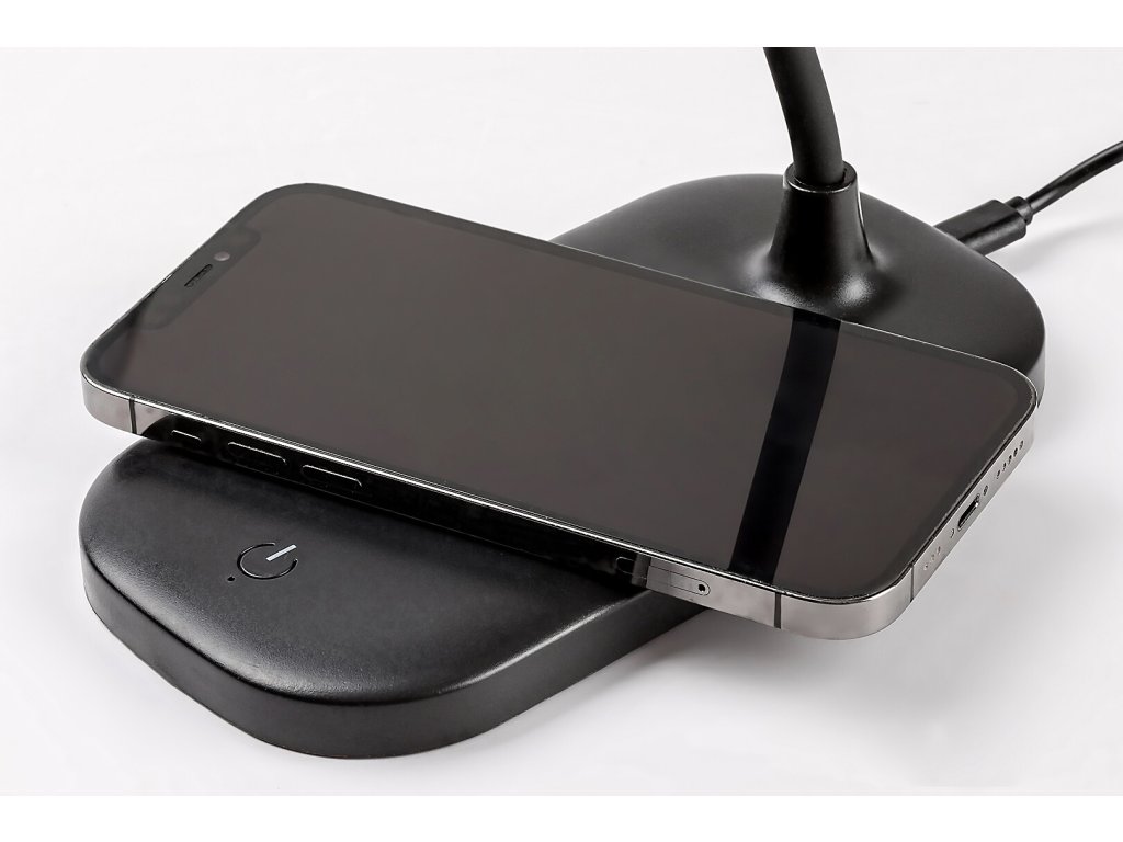 Černá LED stolní lampička Hardin 5W s bezdrátovým nabíjením