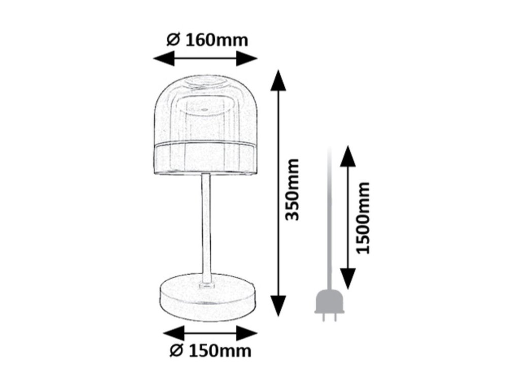 Lampička má kovové tělo v černém provedení, které doplňuje elegantní stínidlo z kouřového skla. Stabilní kulatá základna zajišťuje bezpečné postavení na stole či nočním stolku a nadčasový design se snadno začlení do moderního i klasického interiéru.