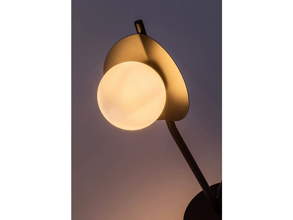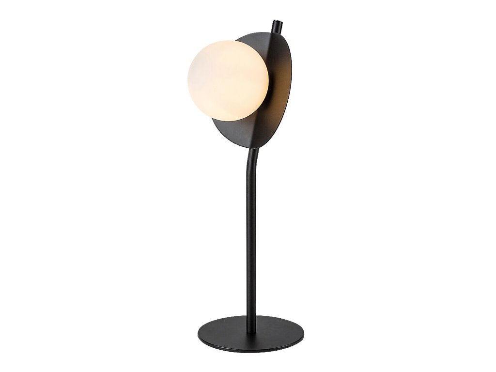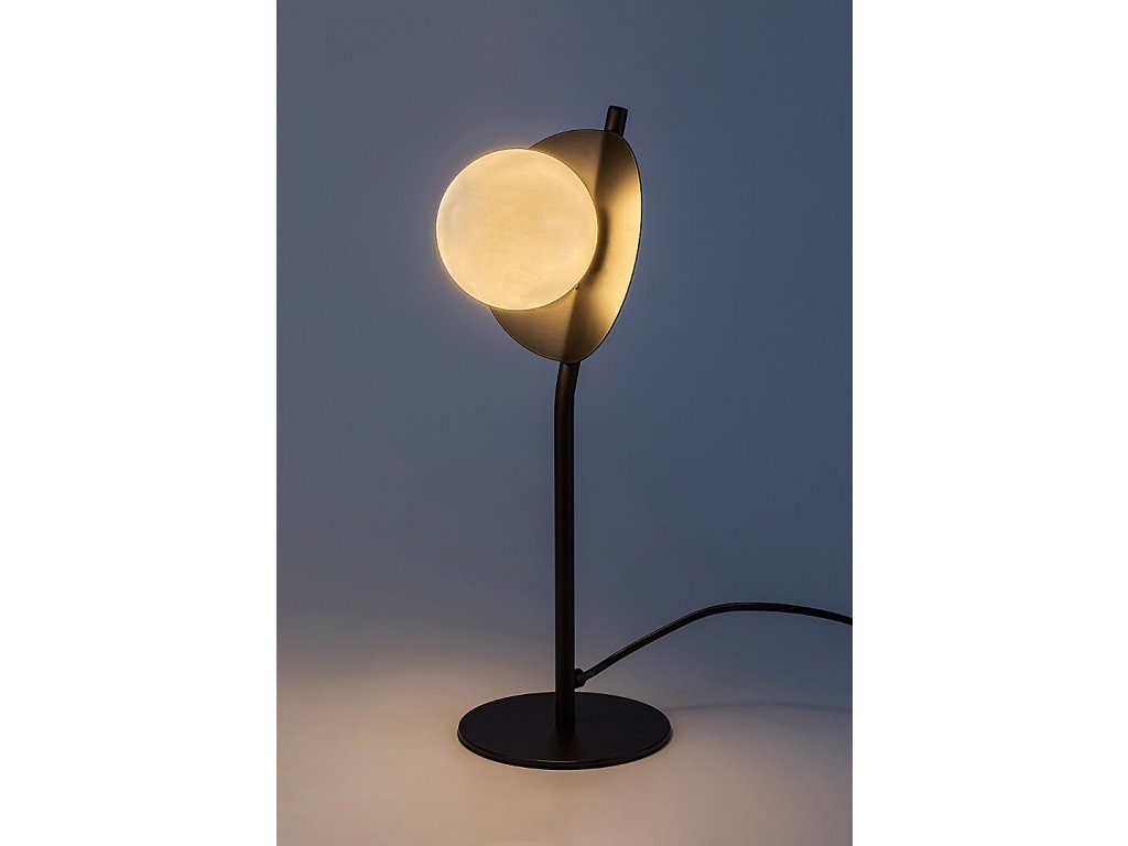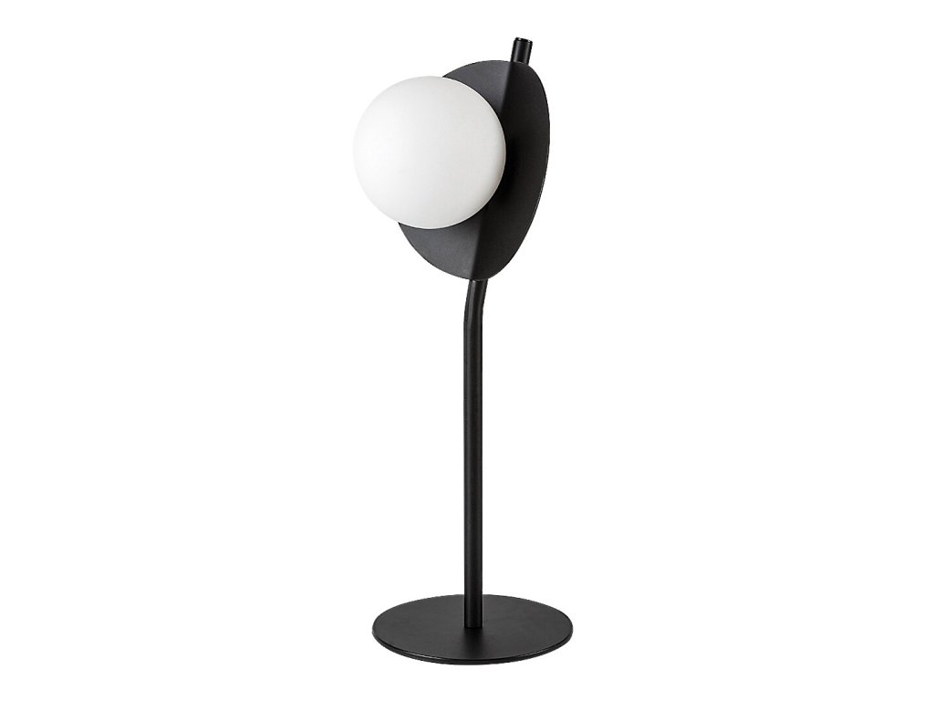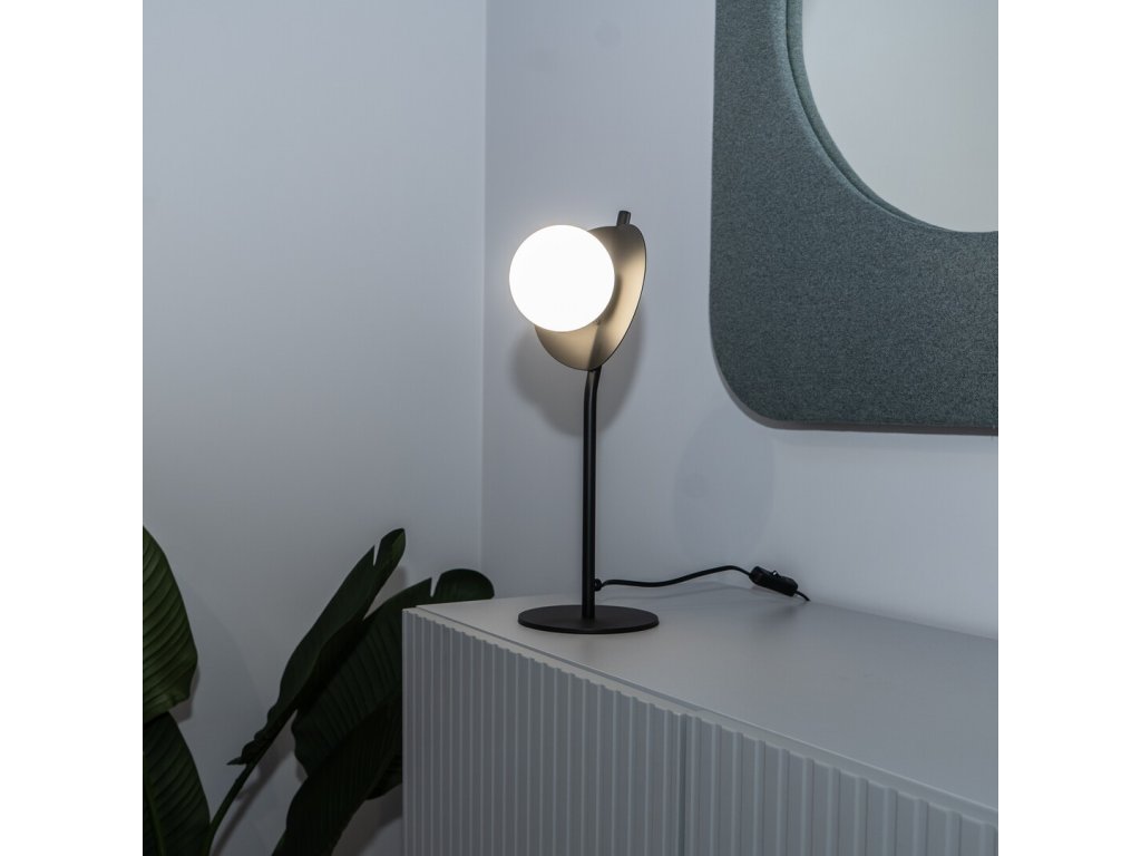 Stolní lampa Jules zaujme originálním industriálním designem a výrazným světelným prvkem, který se stává přirozeným doplňkem moderního interiéru. Černá kovová konstrukce v matném provedení působí stroze a elegantně zároveň, zatímco bílé skleněné stínidlo v podobě lesklé koule připomínající měsíc dodává lampě jemný a dekorativní charakter. Kontrast těchto materiálů vytváří vyvážený celek, který v prostoru nepůsobí rušivě, ale naopak podtrhuje jeho atmosféru.