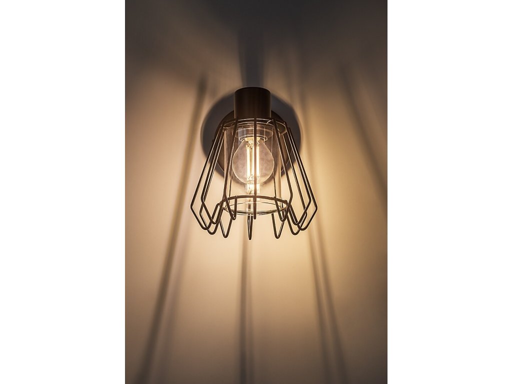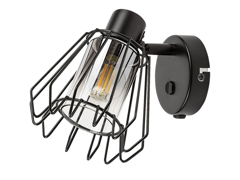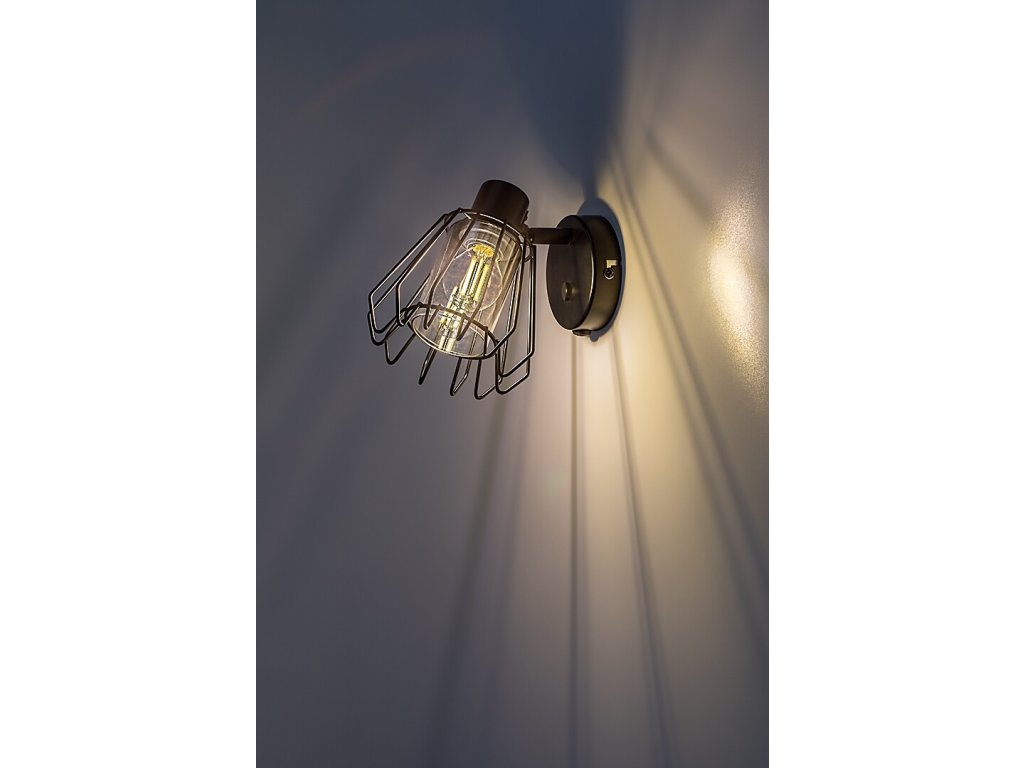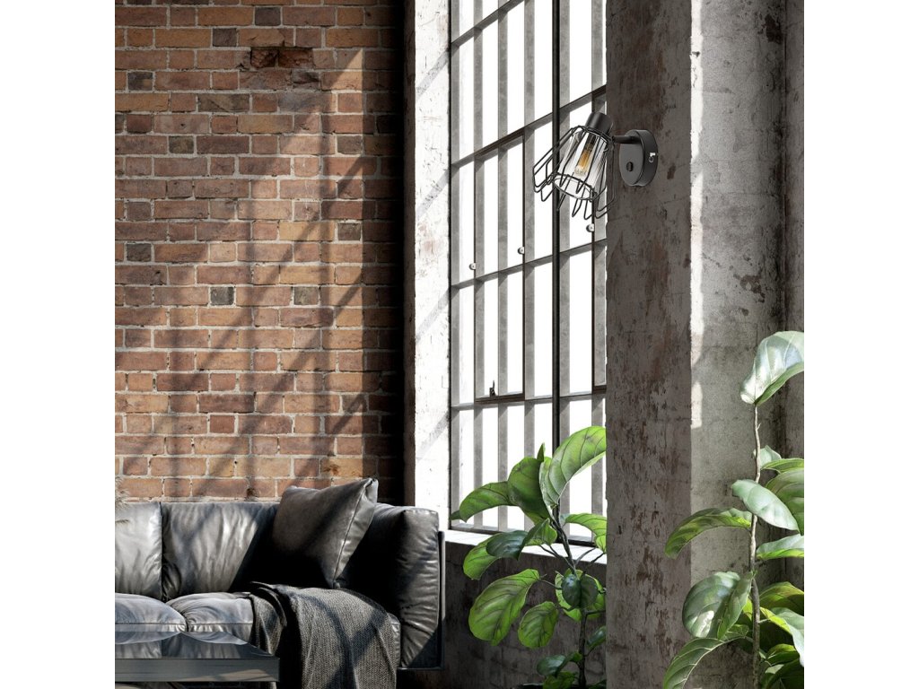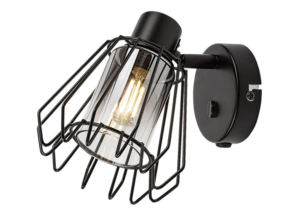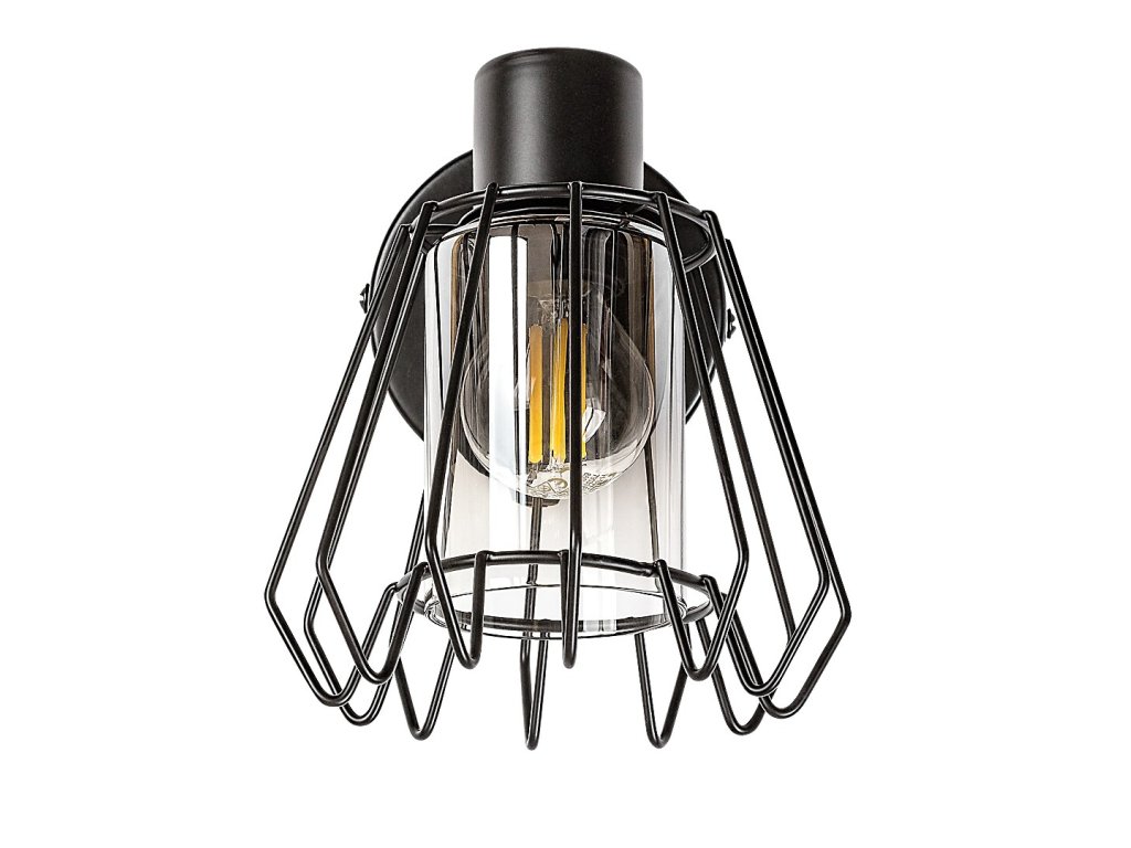 Nástěnné bodové svítidlo Emerencia zaujme výrazným industriálním designem a otevřenou kovovou konstrukcí. Černé kovové tělo je doplněno kouřovým skleněným stínidlem, které je chráněno vnějším drátěným krytem ve tvaru písmene A. Svítidlo působí technicky a dekorativně zároveň a stává se výrazným prvkem interiéru.