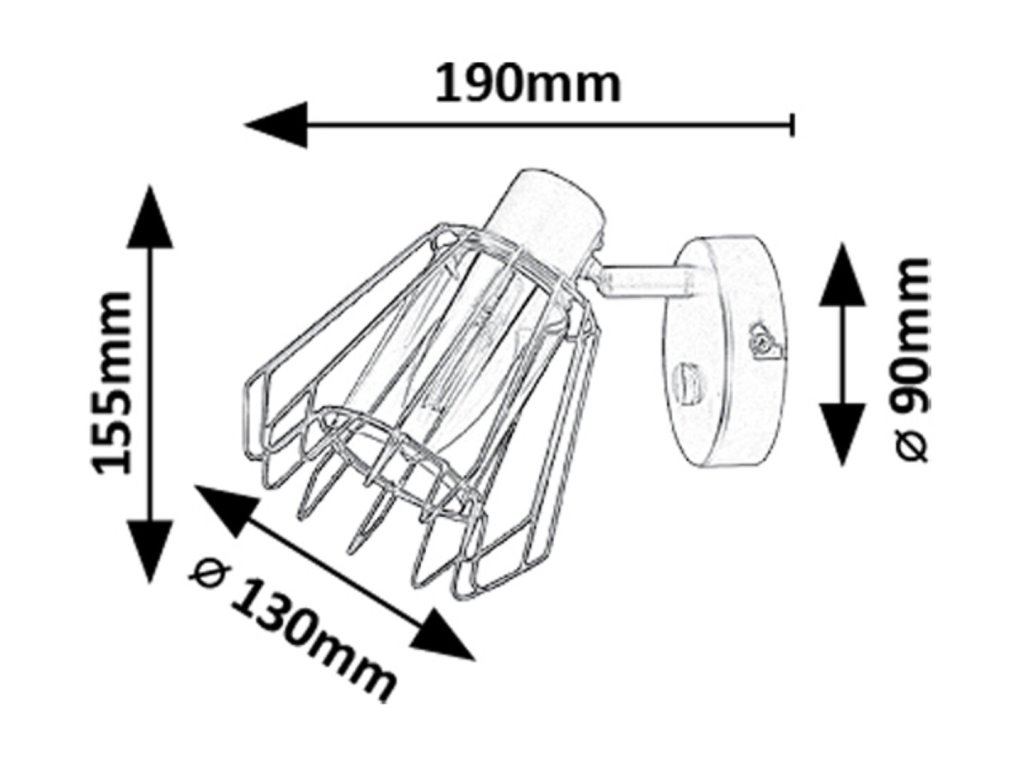 Celková délka svítidla je přibližně 190 mm, výška stínidla činí 155 mm, jeho průměr je 130 mm a průměr nástěnné základny je 90 mm.