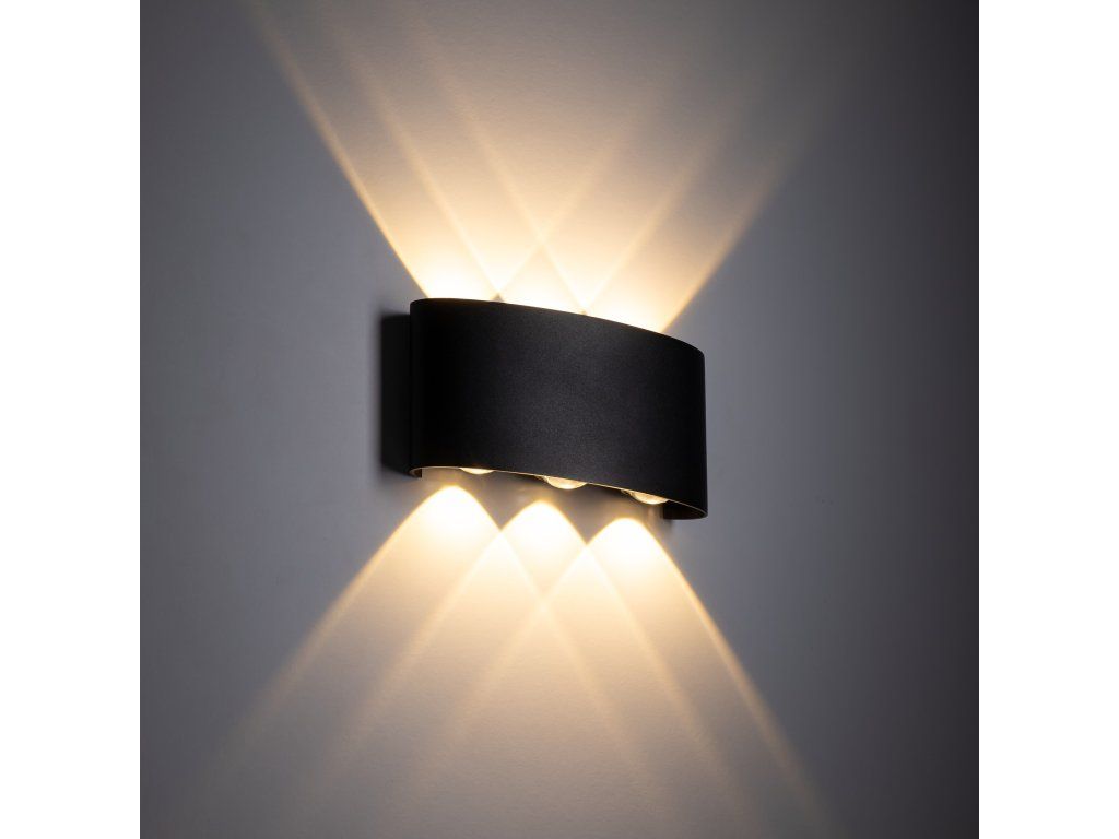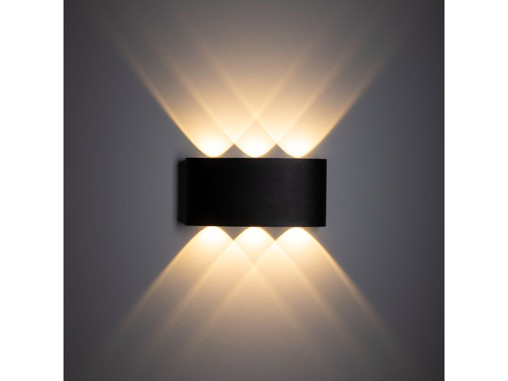 Svítidlo vyzařuje světlo směrem nahoru i dolů ve třech bodech, čímž vytváří zajímavý světelný efekt na stěně a dodává prostoru dynamiku. Díky užšímu úhlu svitu je světlo výraznější a více akcentuje nasvícený povrch, což oceníte zejména na fasádách, v okolí vstupů nebo na terasách.