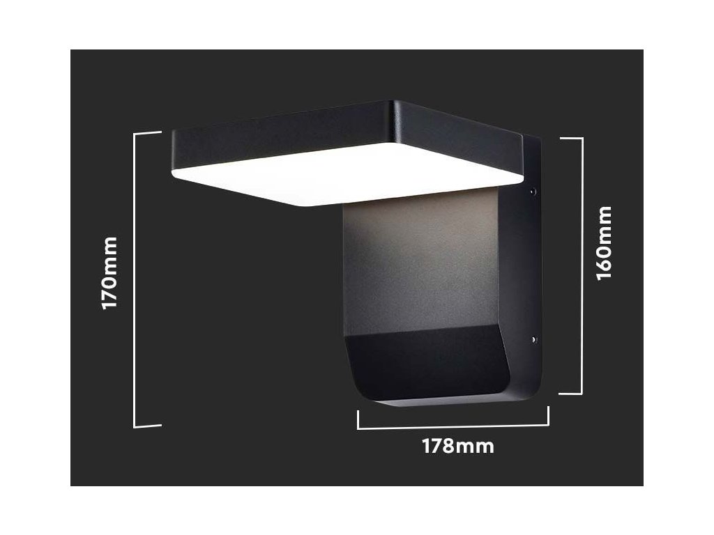 Venkovní nástěnné LED svítidlo má jednoduchý čtvercový design, který vkusně osvítí zdi Vašeho domu, terasy, balkonu či garáže. Tělo svítidla je vyrobeno z odolného hliníku s černou povrchovou úpravou. Stínidlo difuzoru, vyrobené z lesklého polykarbonátu v opálové barvě. Pod stínidlem se nachází integrovaný LED zdroj o výkonu 17W, který nabízí životnost až 20 000 hodin. Krytí IP65 zajišťuje ochranu před prachem a ochranu proti stříkající vodě z každého směru.