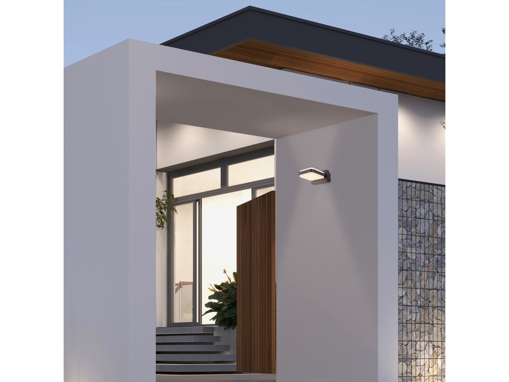 Venkovní nástěnné svítidlo Gendt představuje elegantní řešení pro osvětlení teras, chodníků nebo prostoru u vchodových dveří. Jeho moderní design v černé barvě kombinuje hranaté tvary se zaoblenými rohy, což vytváří harmonický vzhled vhodný pro jakýkoliv exteriér. Tělo svítidla je vyrobené z odolného hliníku, zatímco bílé plastové stínítko zajišťuje rovnoměrné rozptýlení světla.