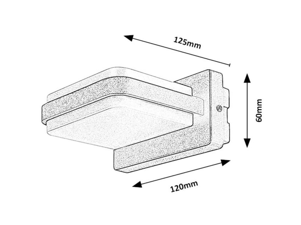 Rozměry tohoto modelu jsou 120 mm na šířku, 60 mm na výšku a vzdálenost od stěny činí 125 mm. Na svítidlo se vztahuje 5-ti letá záruka.
