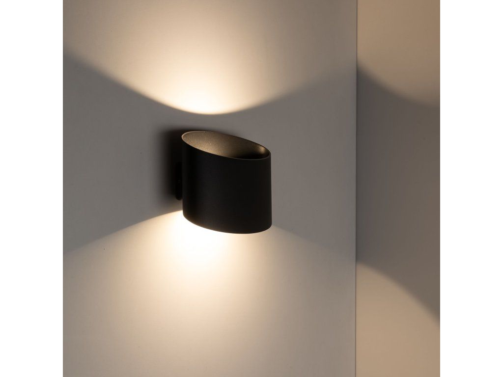 Světlo je vyzařováno směrem nahoru i dolů, čímž vzniká příjemný a rovnoměrný světelný kužel, který zvýrazňuje strukturu stěny a vytváří atraktivní atmosféru. Díky širokému úhlu svitu působí osvětlení měkce a přirozeně, což je ideální jak pro dekorativní, tak i orientační nasvícení prostoru.