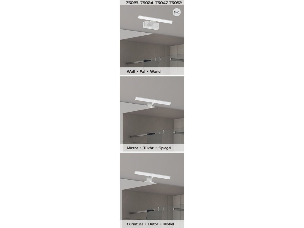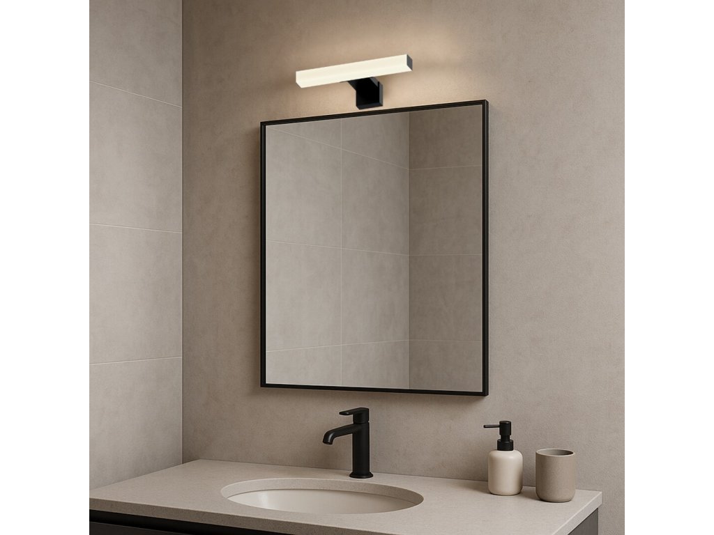 Koupelnové svítidlo nad zrcadlo Oliro představuje moderní a bezpečné řešení pro každodenní osvětlení koupelny s mimořádně variabilním způsobem uchycení. Elegantní hranatá základna v černém provedení v kombinaci s bílým stínidlem působí výrazně, moderně a nadčasově a skvěle se hodí především do minimalistických a industriálně laděných interiérů. Svítidlo nabízí tři způsoby montáže – lze jej klasicky připevnit na stěnu, pomocí praktického klipu uchytit přímo na sklo zrcadla nebo jej instalovat na nábytek, což výrazně rozšiřuje možnosti použití.