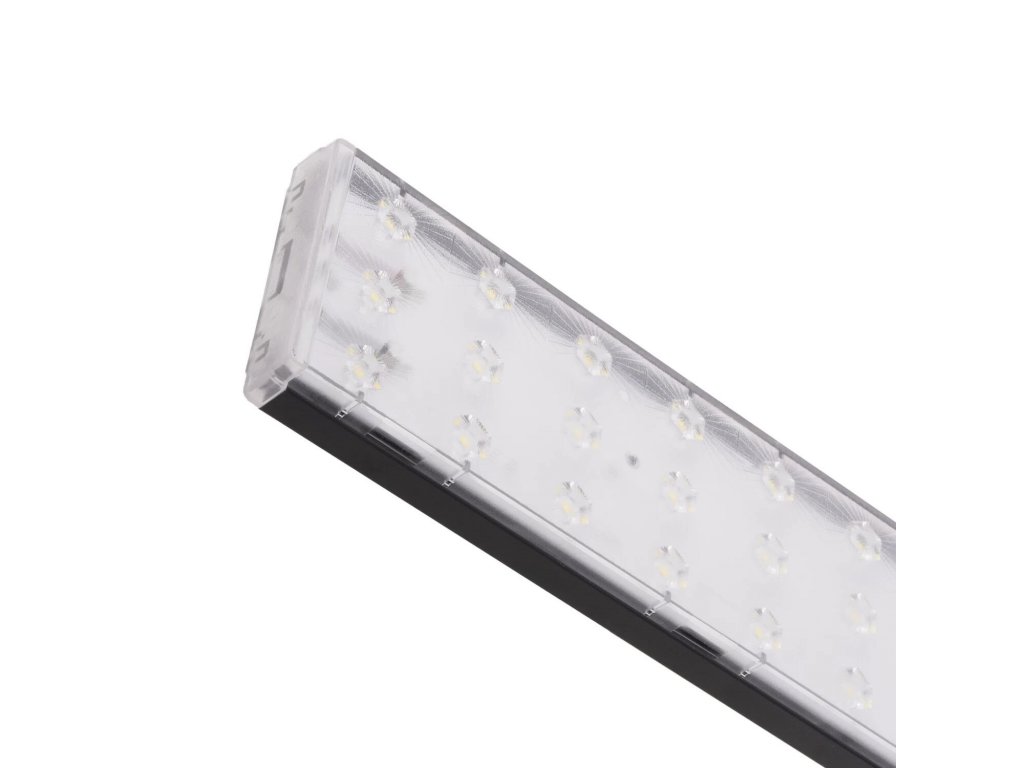 Kromě lištových svítidel s úhlem svitu 90° máme v nabídce také variantu se 120° úhlem svitu. Použití lineárního světla s úhlem 90° nebo 120° závisí na konkrétních potřebách jako třeba šířka a výška uličky (prostoru) a cílem osvětlení. Pokud je například ulička úzká, může být vhodné použít světlo s úhlem 90°, protože tento úhel bude zaměřen více přímo dolů a méně bokem. Naopak u širší uličky může být vhodně použít světlo s úhlem 120°, které osvítí větší plochu a poskytne lepší viditelnost. Vhodně je u obou úhlů počítat i s osvětlením případného vystaveného zboží například v regálech na stranách uličky. Pokud je svítidlo umístěno ve větší výšce nad uličkou, například prodejní prostory s vysokými stropy, světlo s úhlem 120° může být efektivnější, protože bude svítit více do stran a pokrývat širší plochu, naopak užší úhel koncentruje světlo více do jednoho prostoru.