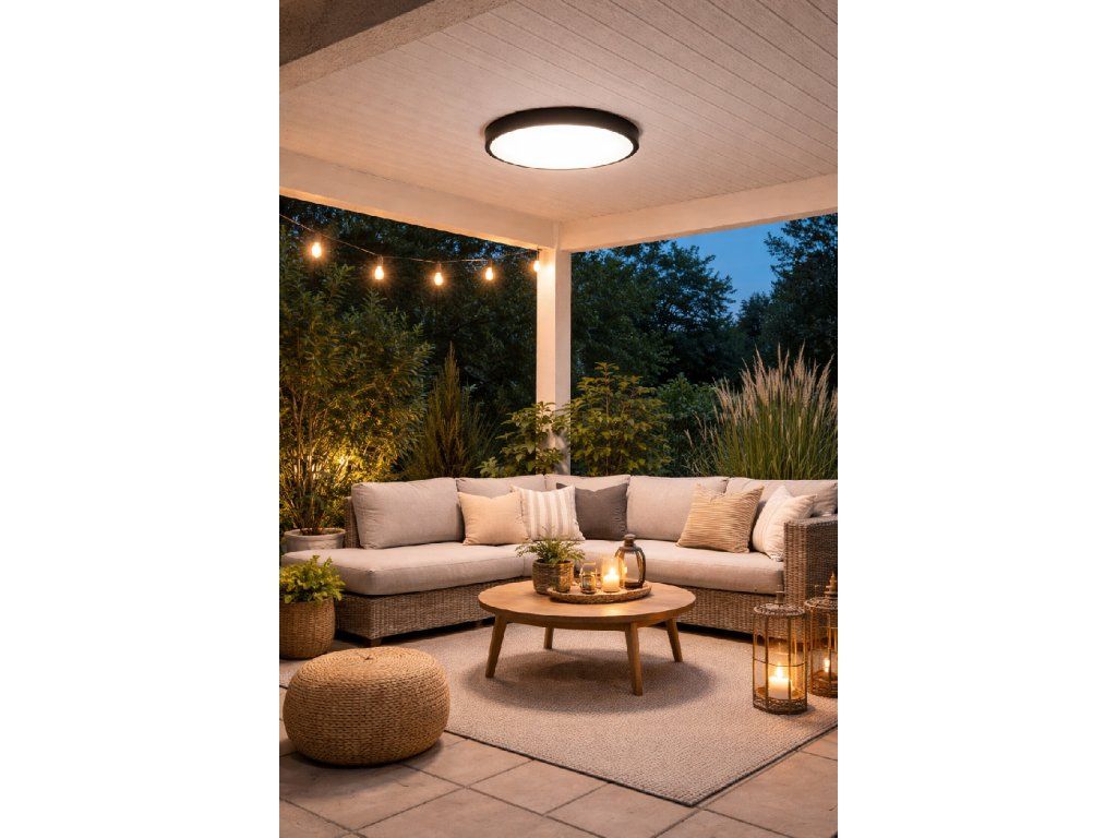 Elegantní kruhové LED svítidlo o výkonu 36W a průměru 35cm je uzpůsobené pro montáž přímo na strop. Řadí se do kategorie přisazených svítidel, čemuž odpovídá i jeho konstrukce. Velmi snadnou instalaci vám zajistí montážní konzole, která zakryje šrouby a díky tomu je svítidlo designově čisté. Do stropu stačí navrtat díry, osadit hmoždinkami a přišroubovat. Vstupní napětí je 230V. Vyznačuje se zvýšenou odolností proti vodě díky krytí IP44.