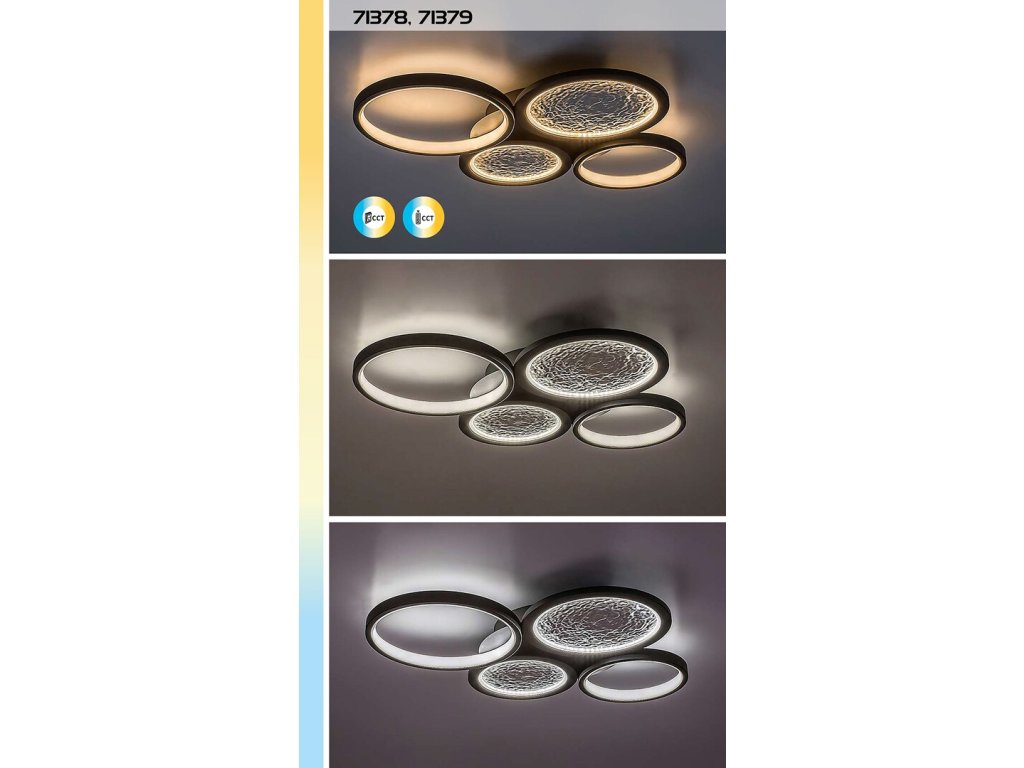 Integrovaný LED světelný zdroj s výkonem 40 W poskytuje světelný tok 2300 lumenů a umožňuje plynulé nastavení barvy světla v rozsahu od teplé bílé 3000 K přes denní bílou 4000 K až po studenou bílou 6500 K. Kromě změny teploty světla lze upravovat také intenzitu osvětlení a využívat praktické funkce paměti, časovače a nočního světla. Veškeré nastavení je možné pohodlně ovládat pomocí přiloženého dálkového ovladače, přičemž základní změnu barvy světla lze provádět i nástěnným vypínačem.