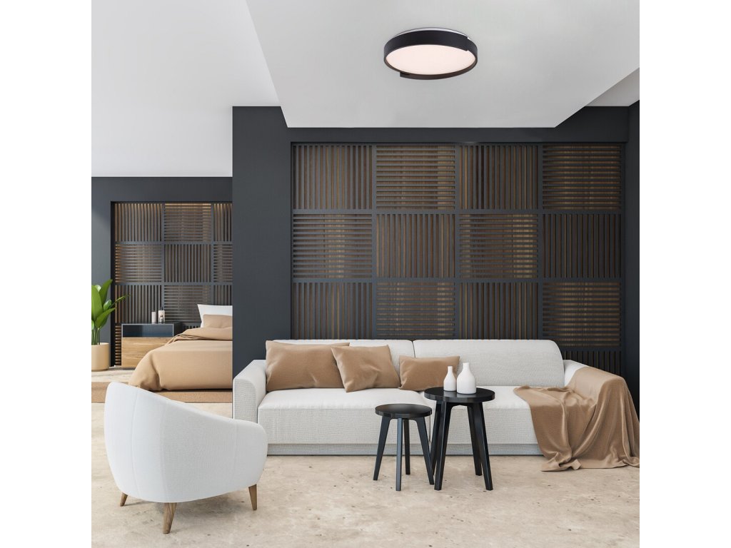 Stropní svítidlo Laleh je navrženo s důrazem na funkčnost, jednoduchý vzhled a pohodlné ovládání, díky čemuž se hodí do moderně zařízených interiérů. Kulaté kovové tělo v černém provedení působí střídmě a elegantně, zatímco bílé plastové stínítko zajišťuje rovnoměrné a neoslňující rozptýlení světla. Design svítidla doplňuje boční rám s jemně tvarovaným profilem, který vytváří zajímavý vizuální efekt.