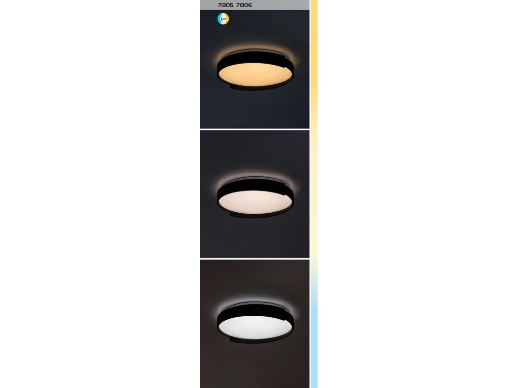 Integrovaný LED světelný zdroj s výkonem 48 W poskytuje světelný tok 3000 lumenů a umožňuje nastavení barvy světla podle aktuální potřeby. Pomocí dálkového ovladače lze volit mezi teplou bílou 3000 K, neutrální denní bílou 4000 K a studenou bílou 6500 K, stejně jako plynule regulovat jas. K dispozici je také paměťová funkce, časovač a praktické noční světlo, které oceníte zejména v ložnici nebo dětském pokoji. Všechny tyto funkce lze pohodlně ovládat právě pomocí přiloženého dálkového ovladače.