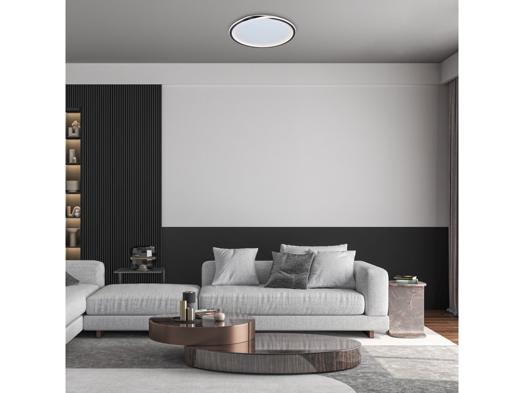 Díky životnosti světelného zdroje 30 000 hodin nabízí svítidlo dlouhodobý a bezúdržbový provoz. S průměrem 560 mm a vzdáleností od stropu 60 mm dokáže efektivně osvětlit i větší místnosti, přičemž jeho elegantní design nenarušuje celkový vzhled interiéru.