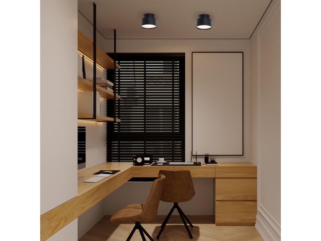 Stropní svítidlo Ovidia zaujme svým moderním technickým designem a kompaktním provedením, které se snadno začlení do většiny současných interiérů. Černé kovové tělo v kombinaci s bílým difuzorem působí elegantně a nadčasově, zatímco jemné podsvícení vytváří na stropě příjemný světelný efekt. Díky svým rozměrům je svítidlo ideální i pro instalaci ve více kusech, například v obývacím pokoji, pracovně nebo ložnici.