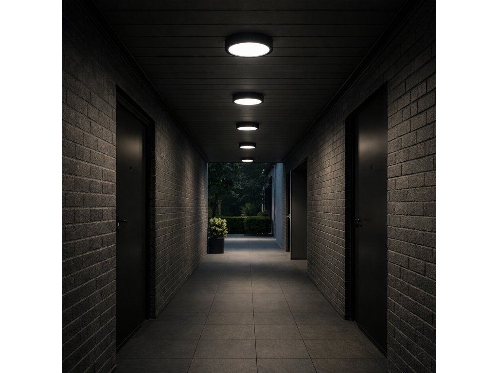 Stropní venkovní svítidlo Shaun Plus zaujme čistým, minimalistickým designem v černém provedení, díky kterému nenápadně zapadne do fasády i krytých venkovních prostor, jako jsou terasy, balkony nebo vstupy do domu. Nízký profil působí elegantně a zároveň prakticky, protože svítidlo nepřekáží a opticky nenarušuje prostor.