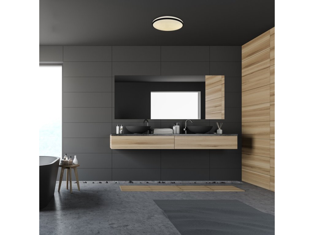 Integrovaný LED světelný zdroj s výkonem 18 W poskytuje světelný tok 1 170 lumenů, což zajišťuje dostatečné osvětlení koupelny. Barevná teplota 3 000 K vytváří příjemné teplé bílé světlo, ideální pro relaxaci a pohodovou atmosféru. Díky úsporné LED technologii má svítidlo životnost až 25 000 hodin, což znamená minimální potřebu údržby.