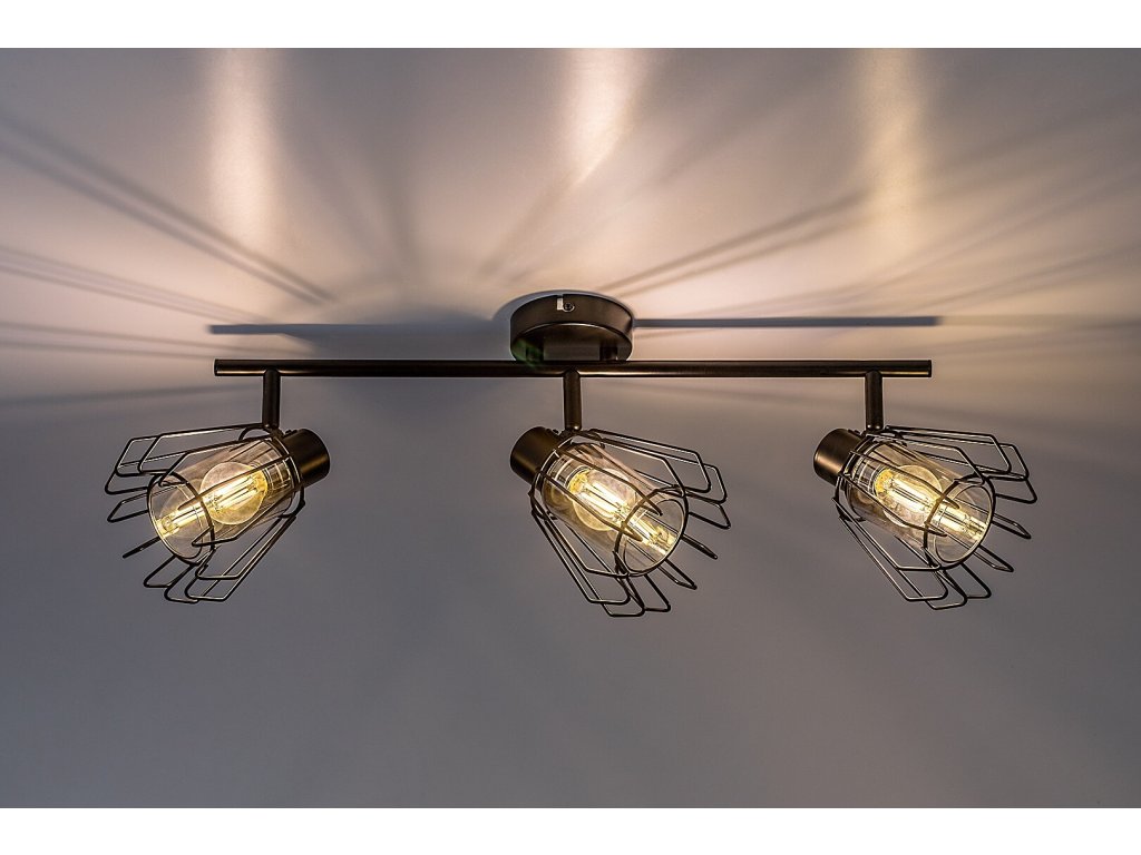 Svítidlo je uchyceno ke stropu pomocí malé kulaté základny, na kterou navazuje nosná kovová tyč se třemi bodovými hlavami. Každý světelný prvek je vybaven flexibilním kloubem, díky němuž lze směr světla individuálně nastavit a cíleně nasvítit konkrétní část místnosti, pracovní plochu nebo dekorativní prvek.