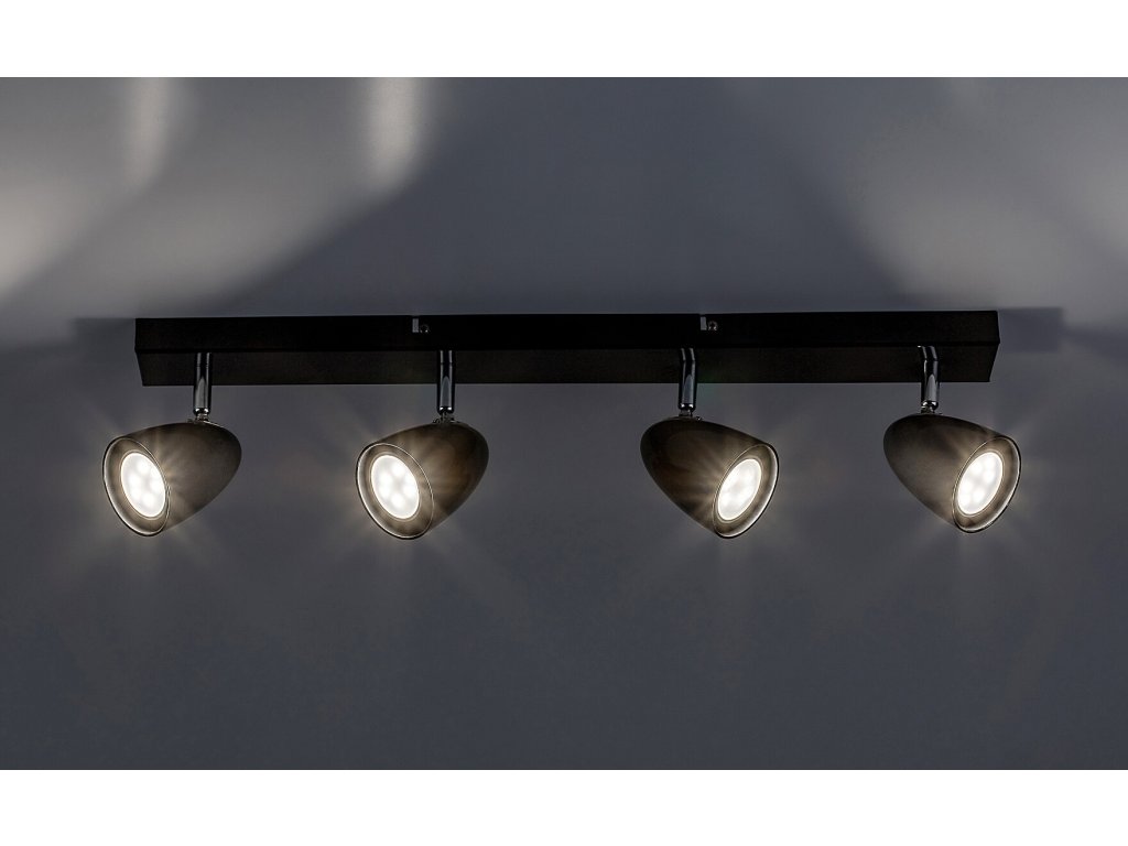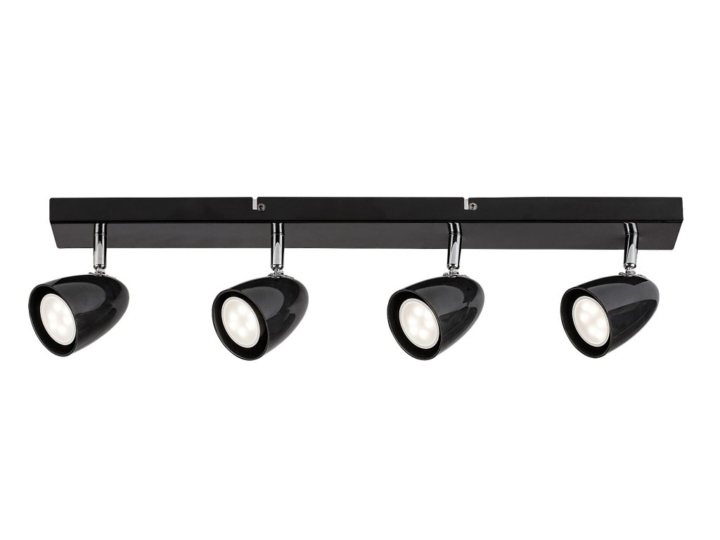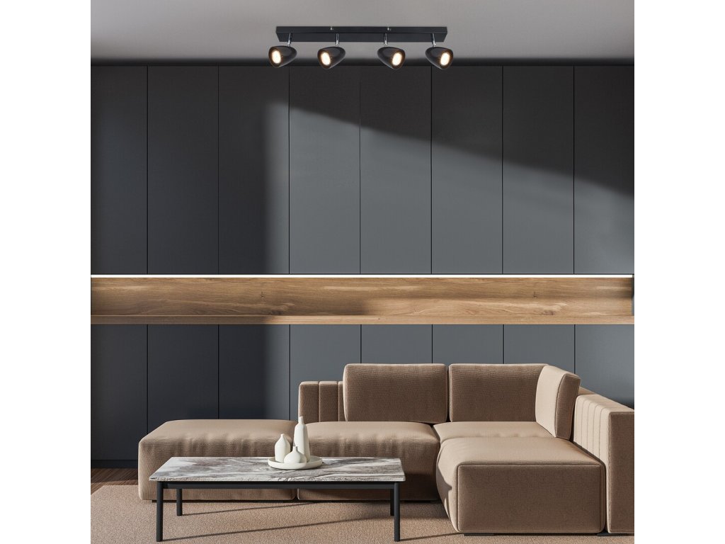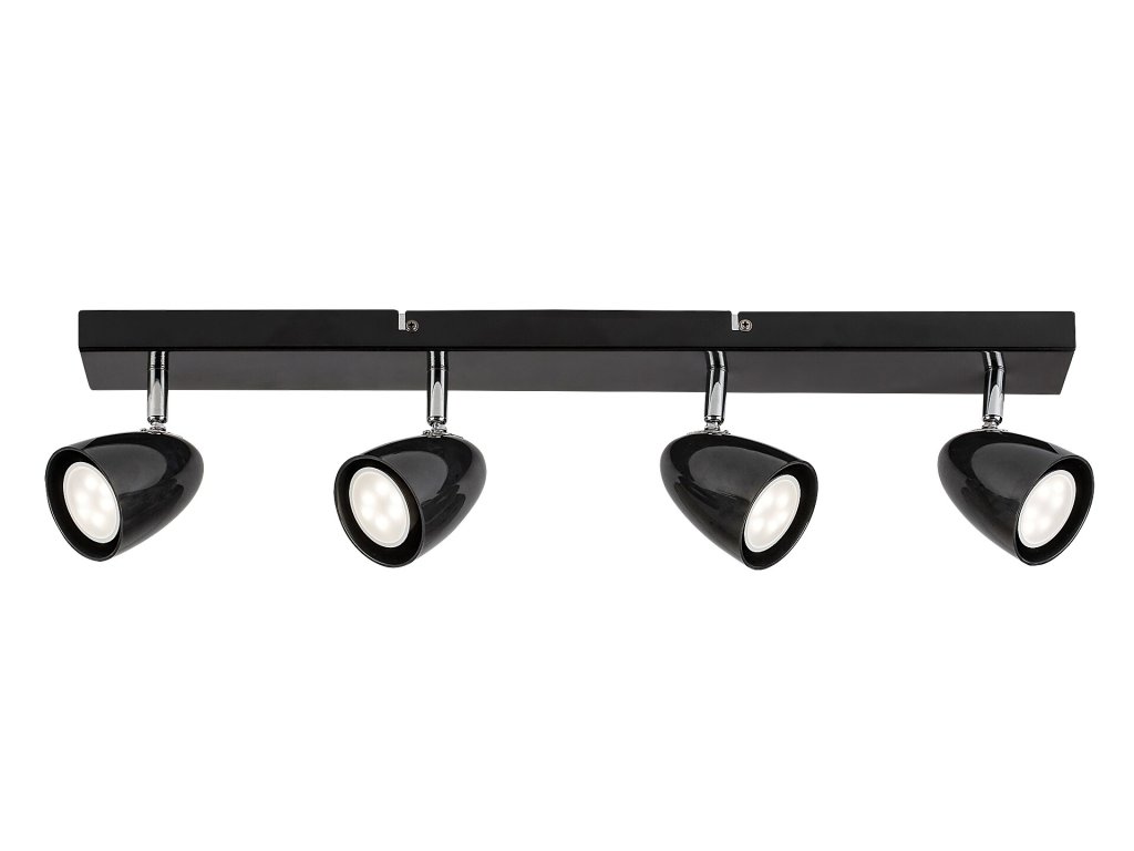 Moderní stropní svítidlo Perico se čtyřmi nastavitelnými světly je skvělou volbou do obývacího pokoje, ložnice nebo pracovny. Černá kovová konstrukce je doplněna o lesklá černá plastová stínítka, která dodávají svítidlu elegantní vzhled. Obdélníkový podstavec umožňuje pevné přichycení ke stropu, zatímco pohyblivé hlavy svítidla umožňují směrování světla dle aktuálních potřeb.