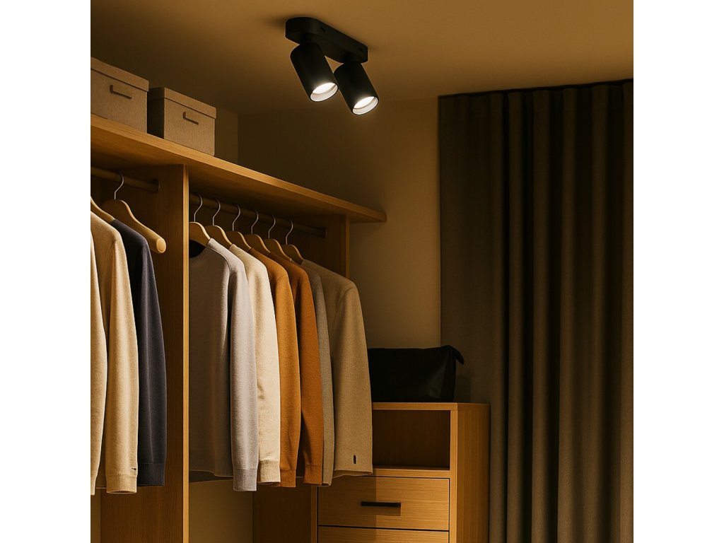 Stropní svítidlo Yourli se dvěma světelnými zdroji je navrženo pro funkční a cílené osvětlení moderních interiérů. Jednoduchý tvar, čisté linie a černé provedení z něj dělají univerzální svítidlo vhodné jak do obytných, tak i technicky laděných prostor.